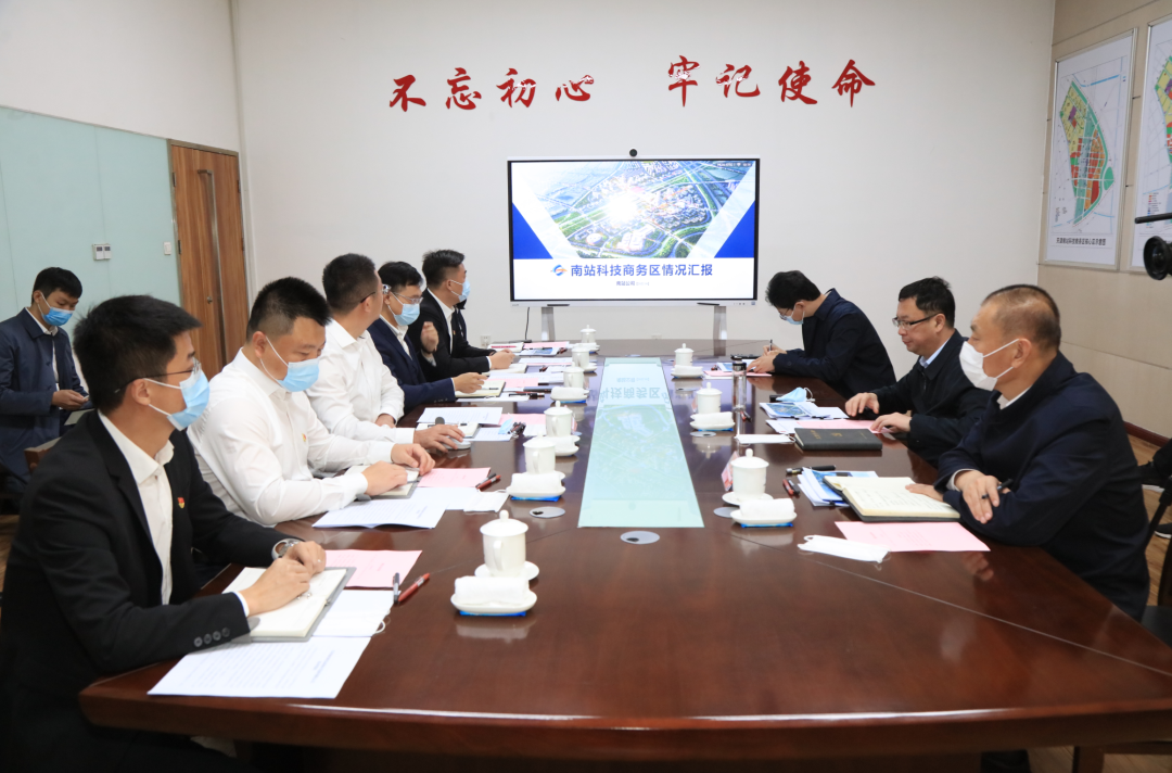 随后,朱财斌主持召开座谈会,听取关于南站科技商务区有关工作情况及南站地区一体化设计情况介绍。