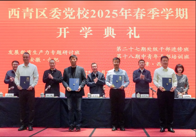 开学典礼上,传达学习中央党校、市委党校2025年春季学期开学典礼讲话精神,同步发布西青区“青”锋导师团工作方案。区领导为“青”锋导师团导师代表颁发聘书,通过汇聚战略智库,构建“政治铸魂、履职强基、创新破局、成长赋能”四位一体的导师方阵,为西青党员干部担当大区之责持续赋能聚力。