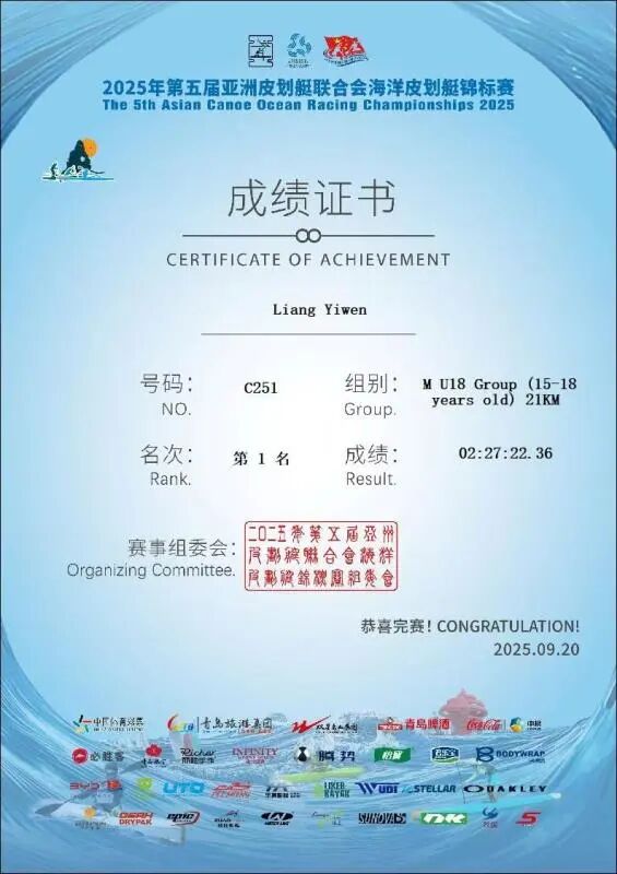 9月19日上午,在山东青岛石老人海水浴场,2025年第五届亚洲皮划艇联合会海洋皮划艇锦标赛正式拉开帷幕。在这片海浪翻滚的赛道上,来自西青区的两位少年梁译文、魏一铭,代表中国队,用实力和毅力书写了属于他们的高光时刻——包揽男子U18组21公里项目冠、亚军!