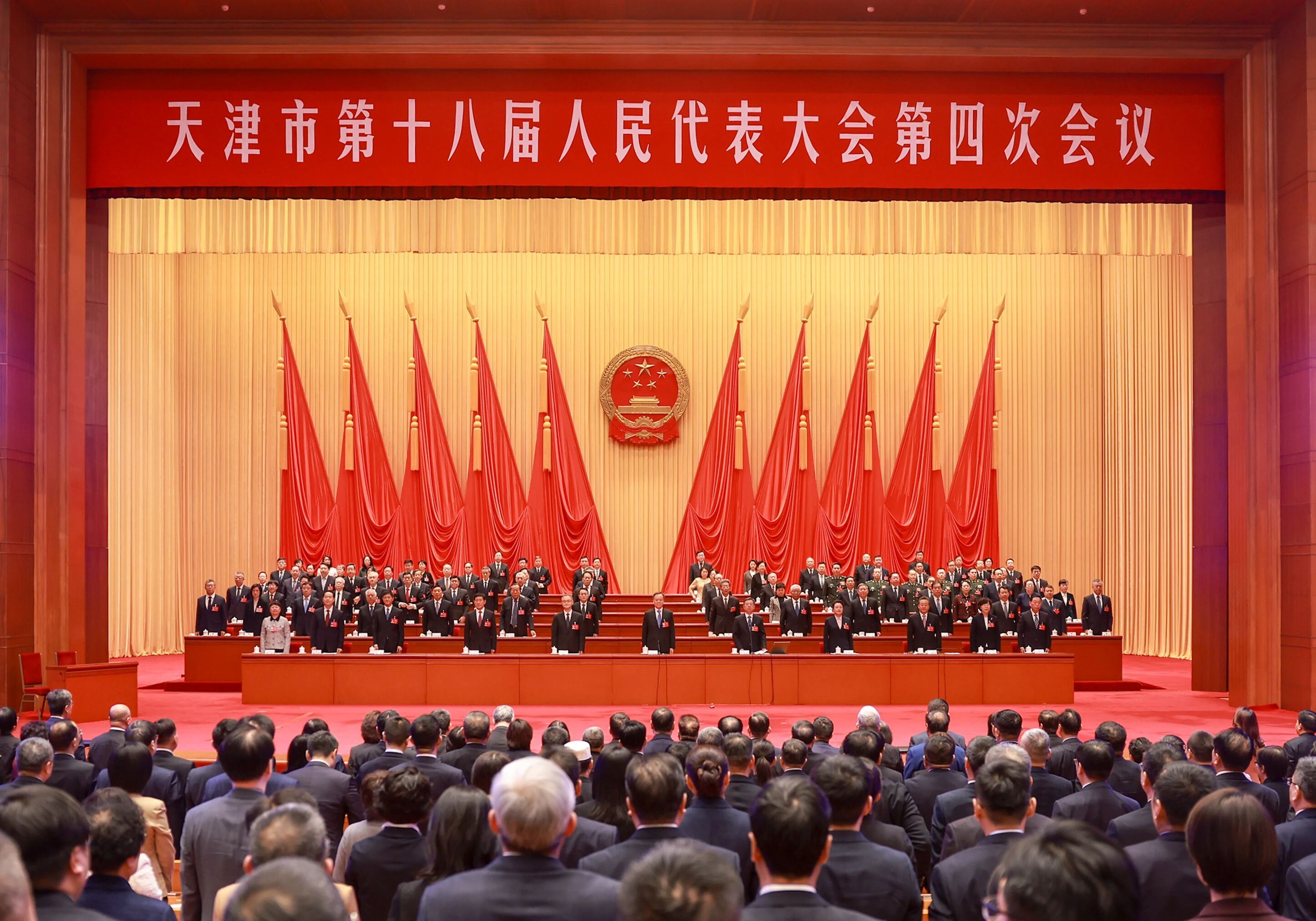 天津市第十八届人民代表大会第四次会议圆满完成各项议程,1月29日下午在天津礼堂闭幕。