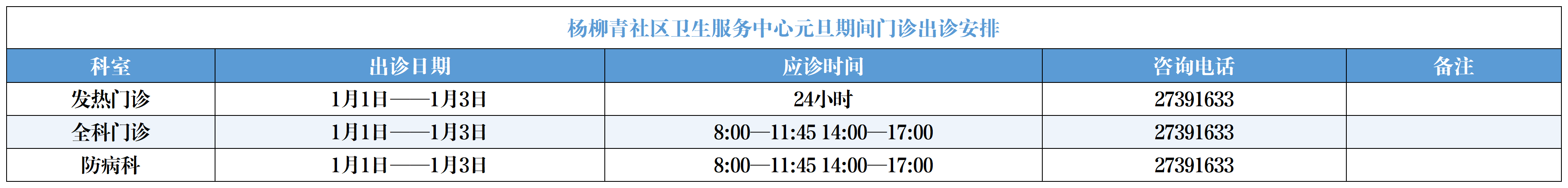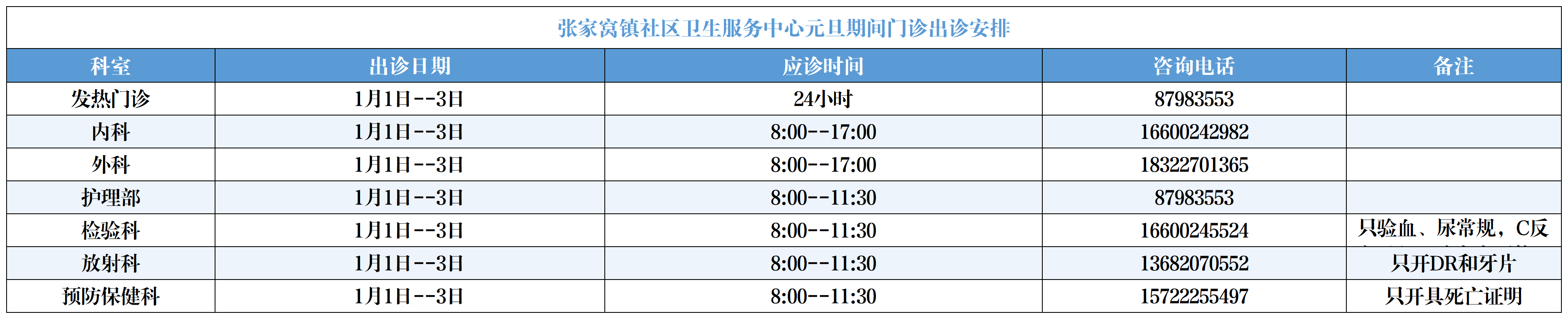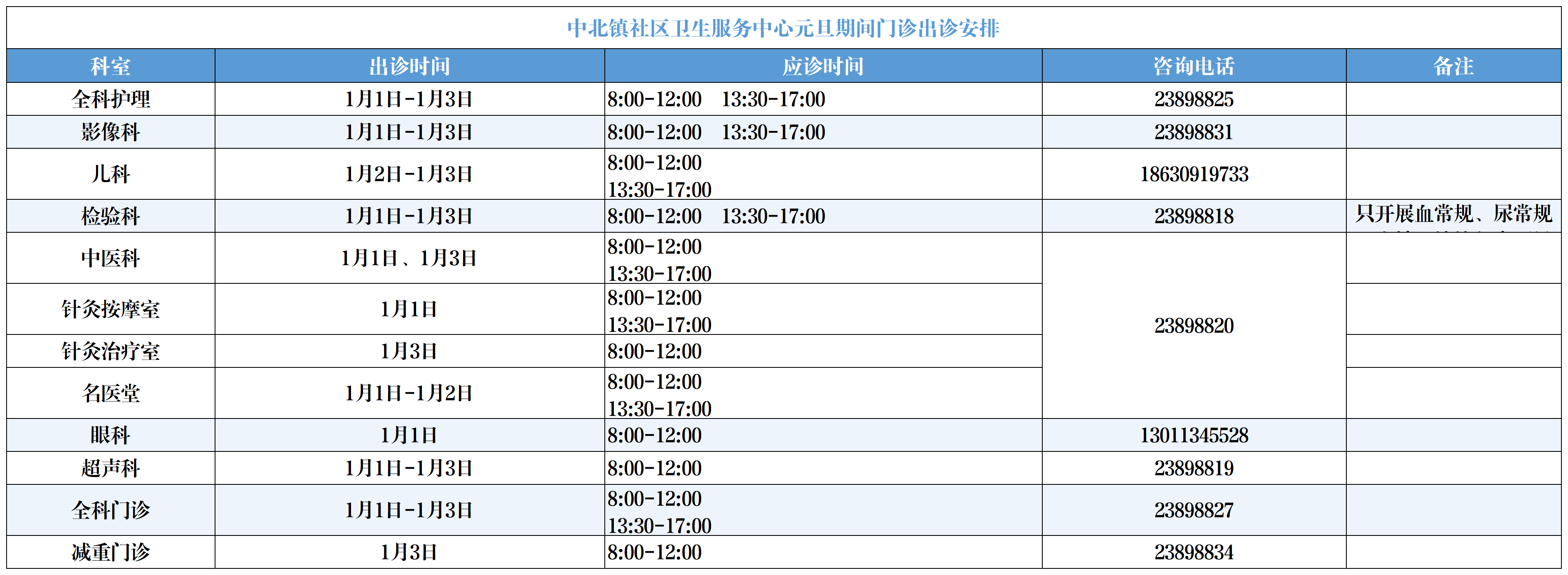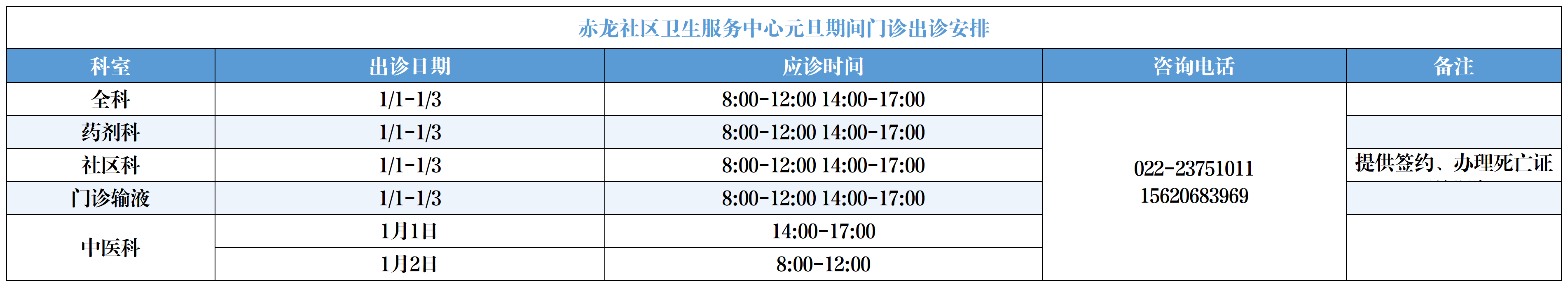 注:津门湖街社区卫生服务中心元旦期间不开诊。
