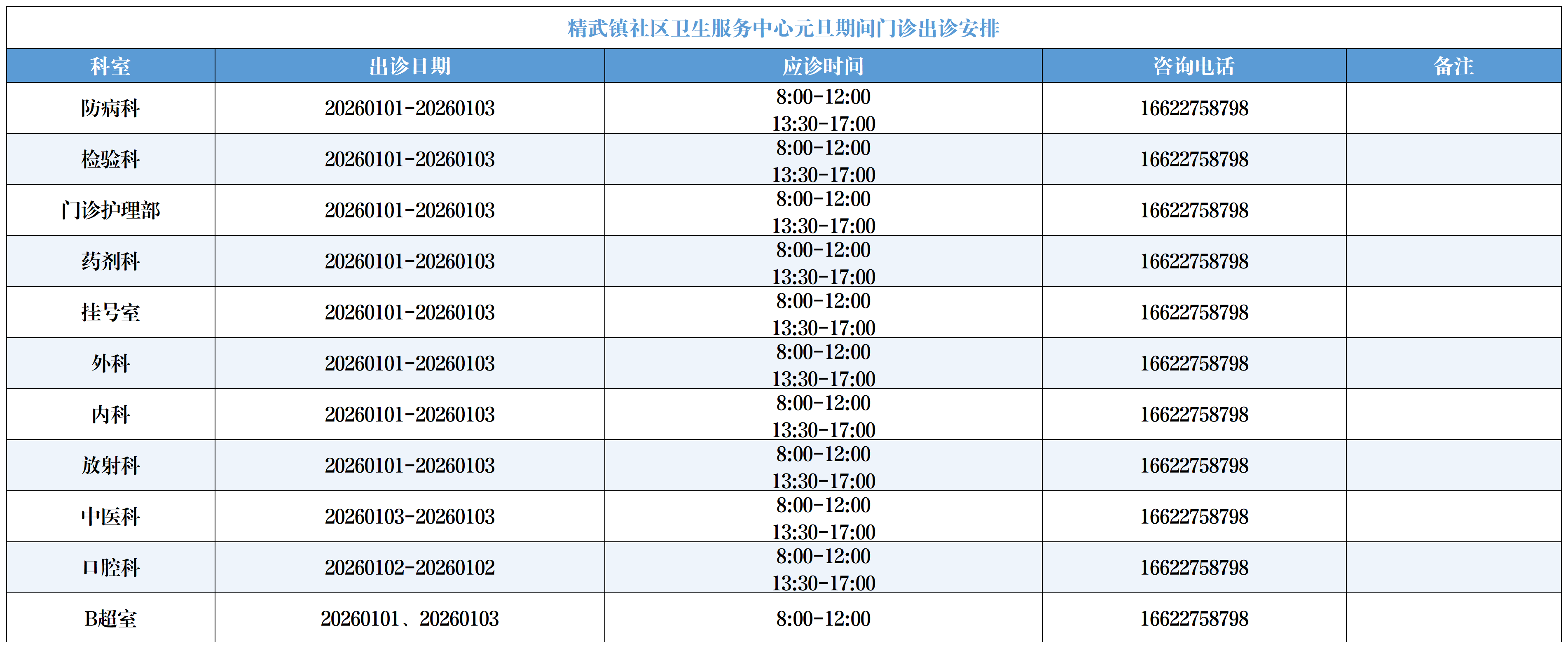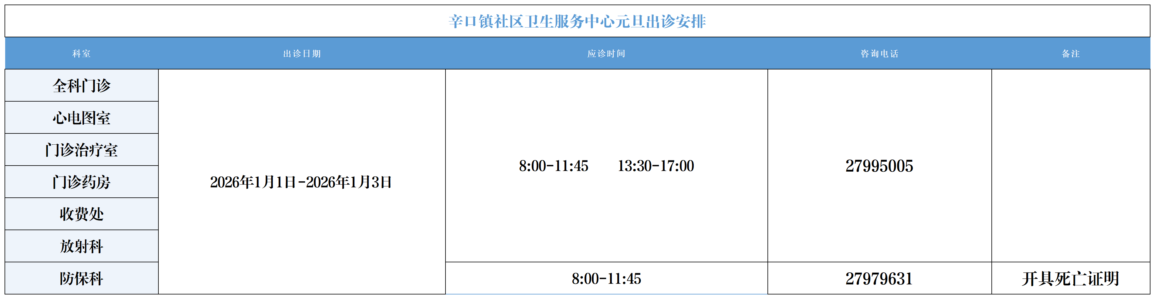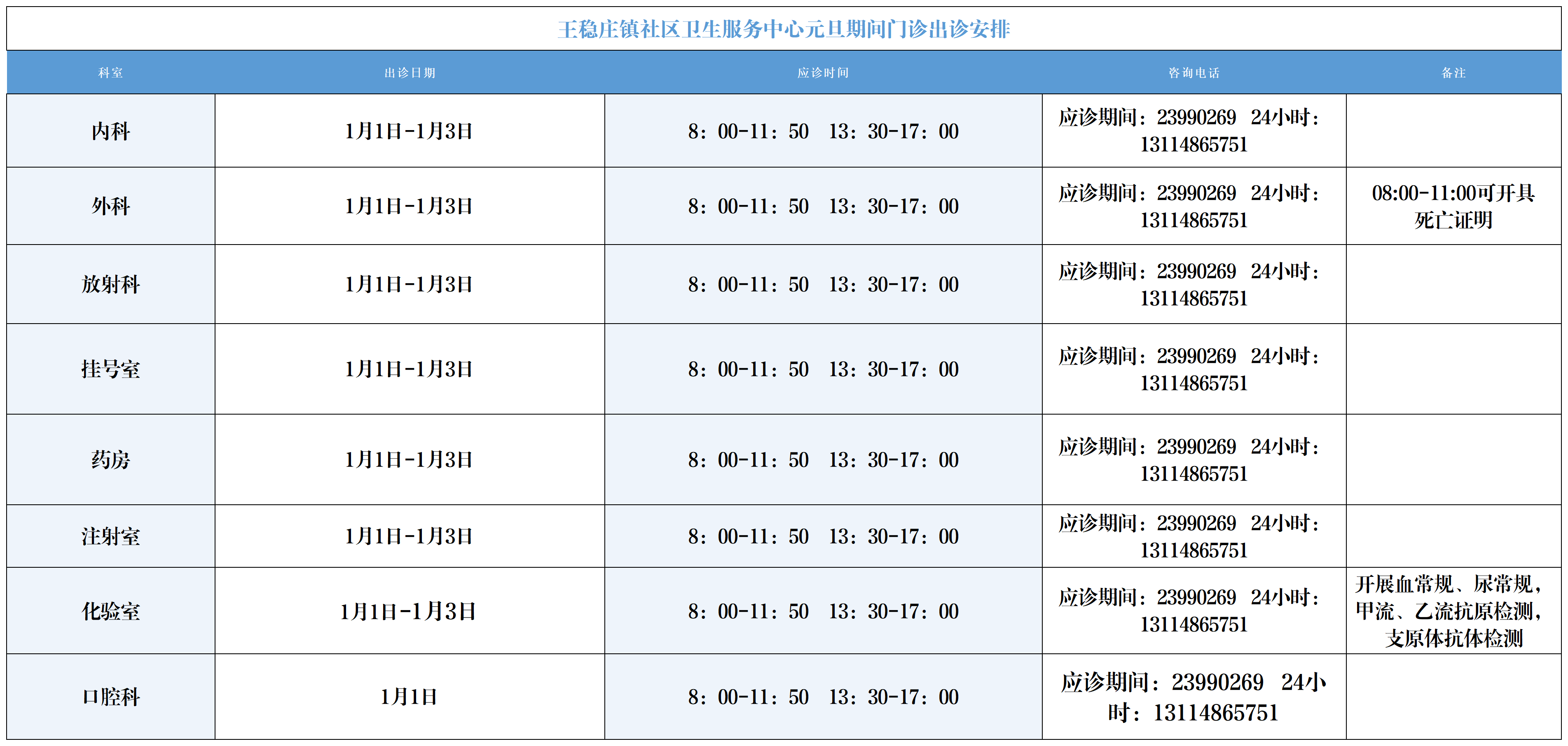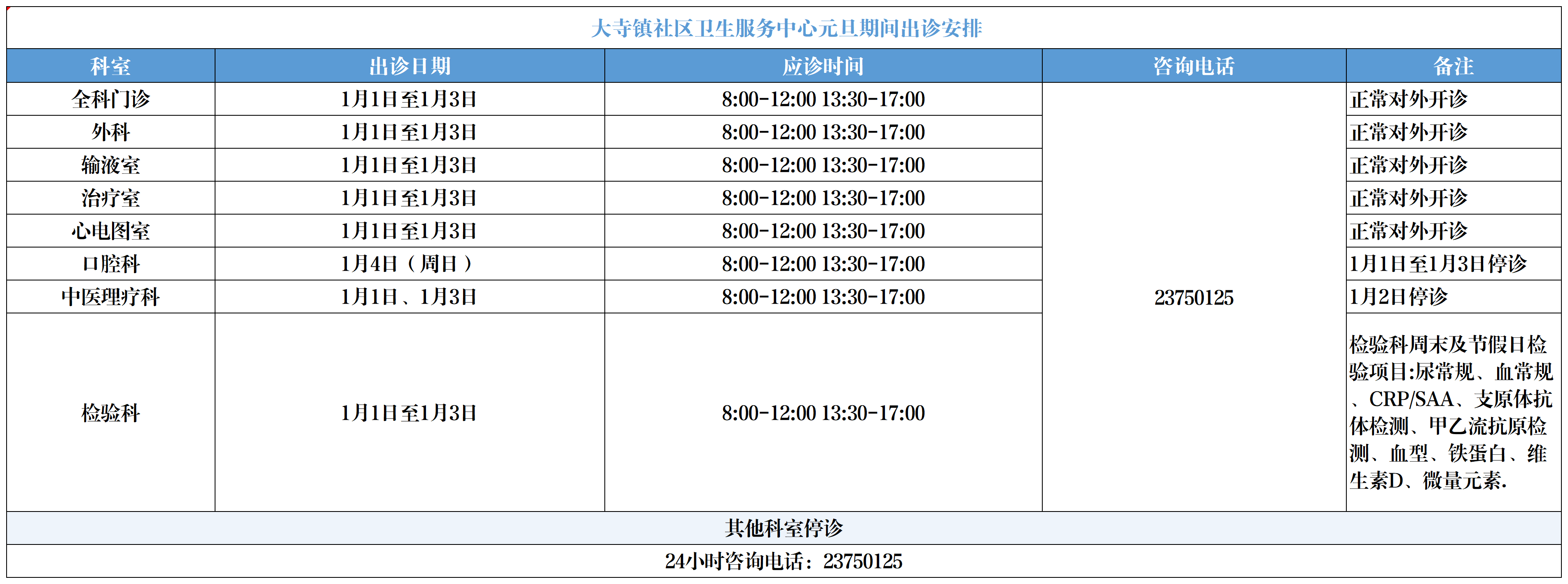 注:津门湖街社区卫生服务中心元旦期间不开诊。