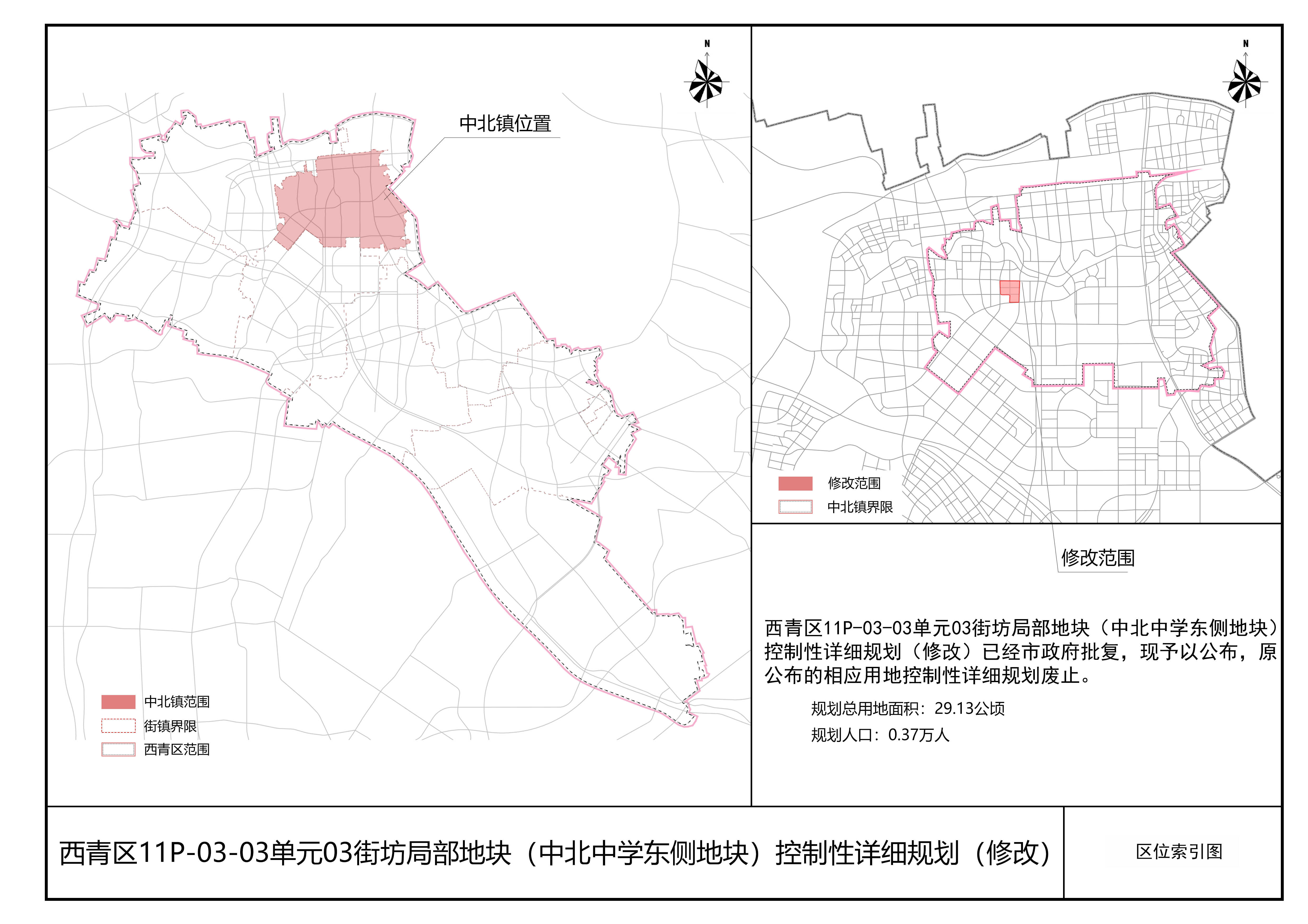 关于公布西青区11P—03—03单元03街坊局部地块(中北中学东侧地块)控制性详细规划(修改)的通知