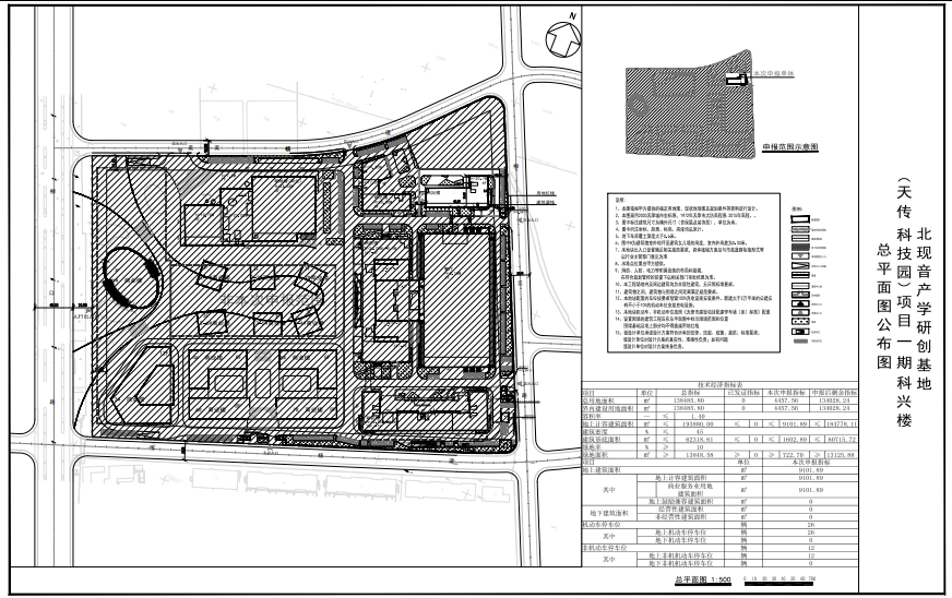 关于公布北现音产学研创基地(天传科技园)项目一期科兴楼建设工程设计方案总平面图的通知