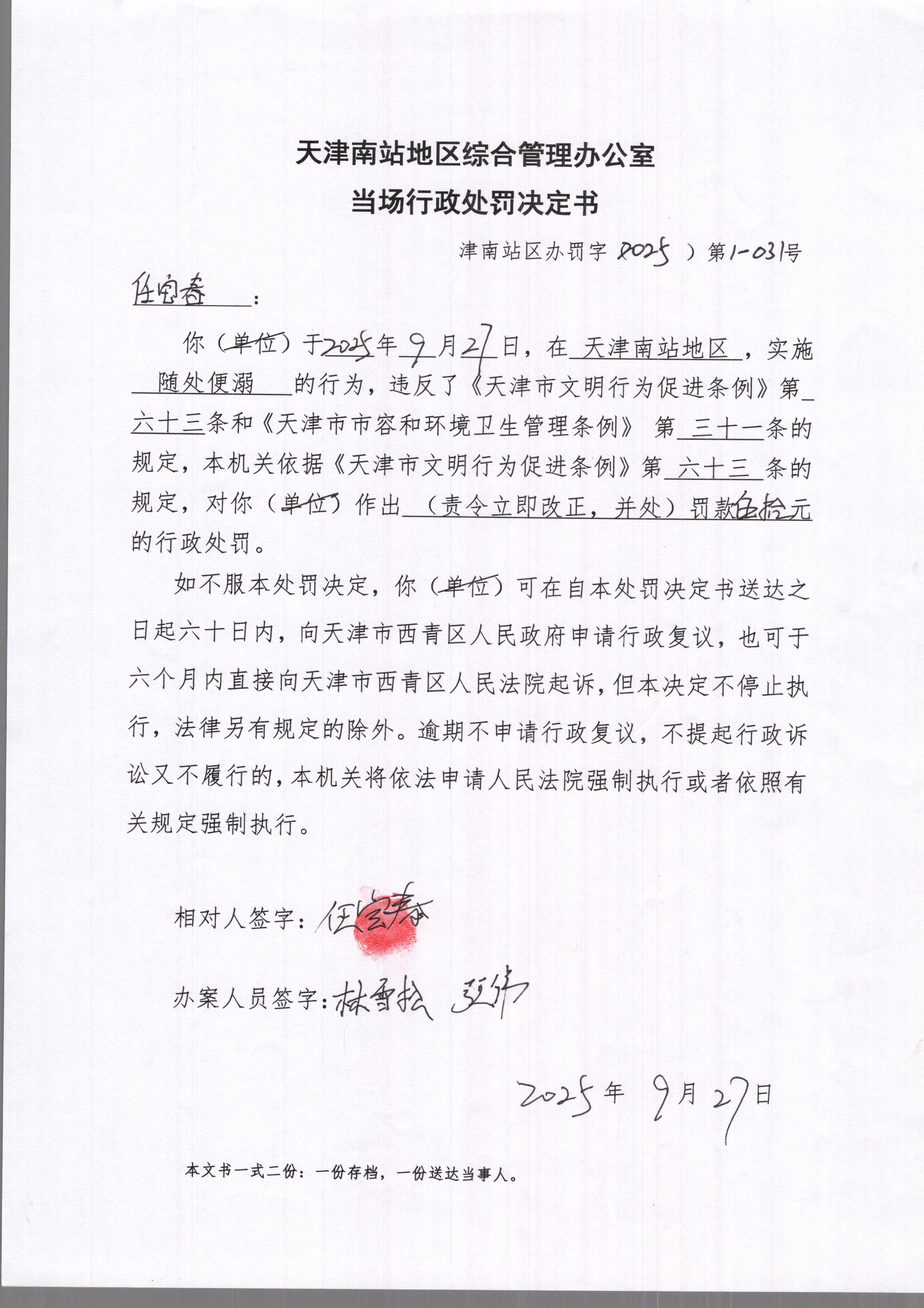 依据《西青区关于全面推行行政执法公示制度执法全过程记录制度重大执法决定法制审核制度的实施方案》,对行政执法决定予以公示。