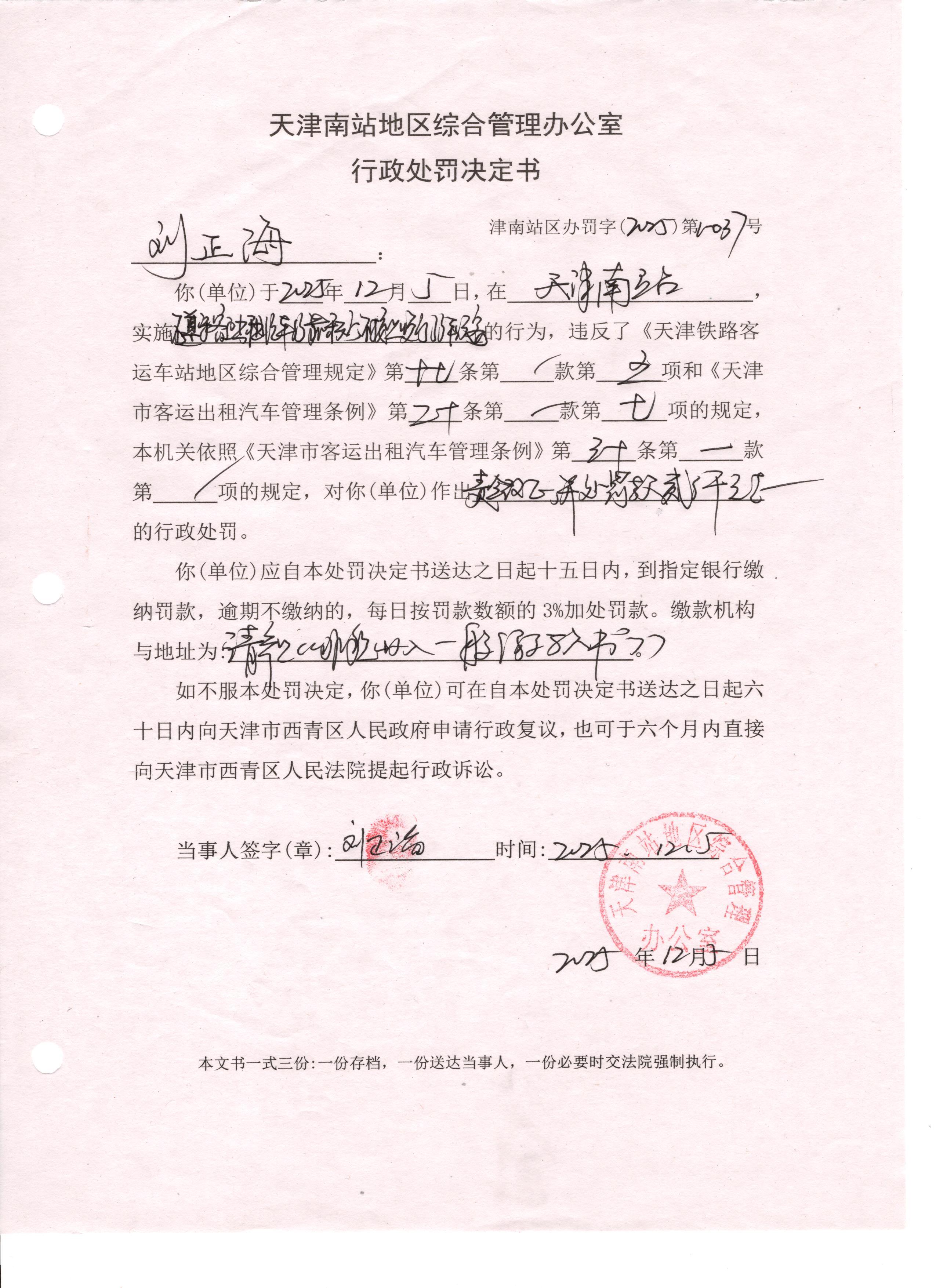 依据《西青区关于全面推行行政执法公示制度执法全过程记录制度重大执法决定法制审核制度的实施方案》,对行政执法决定予以公示。
