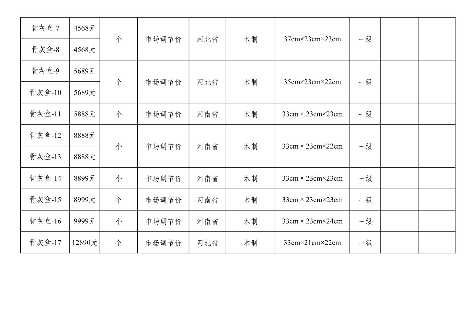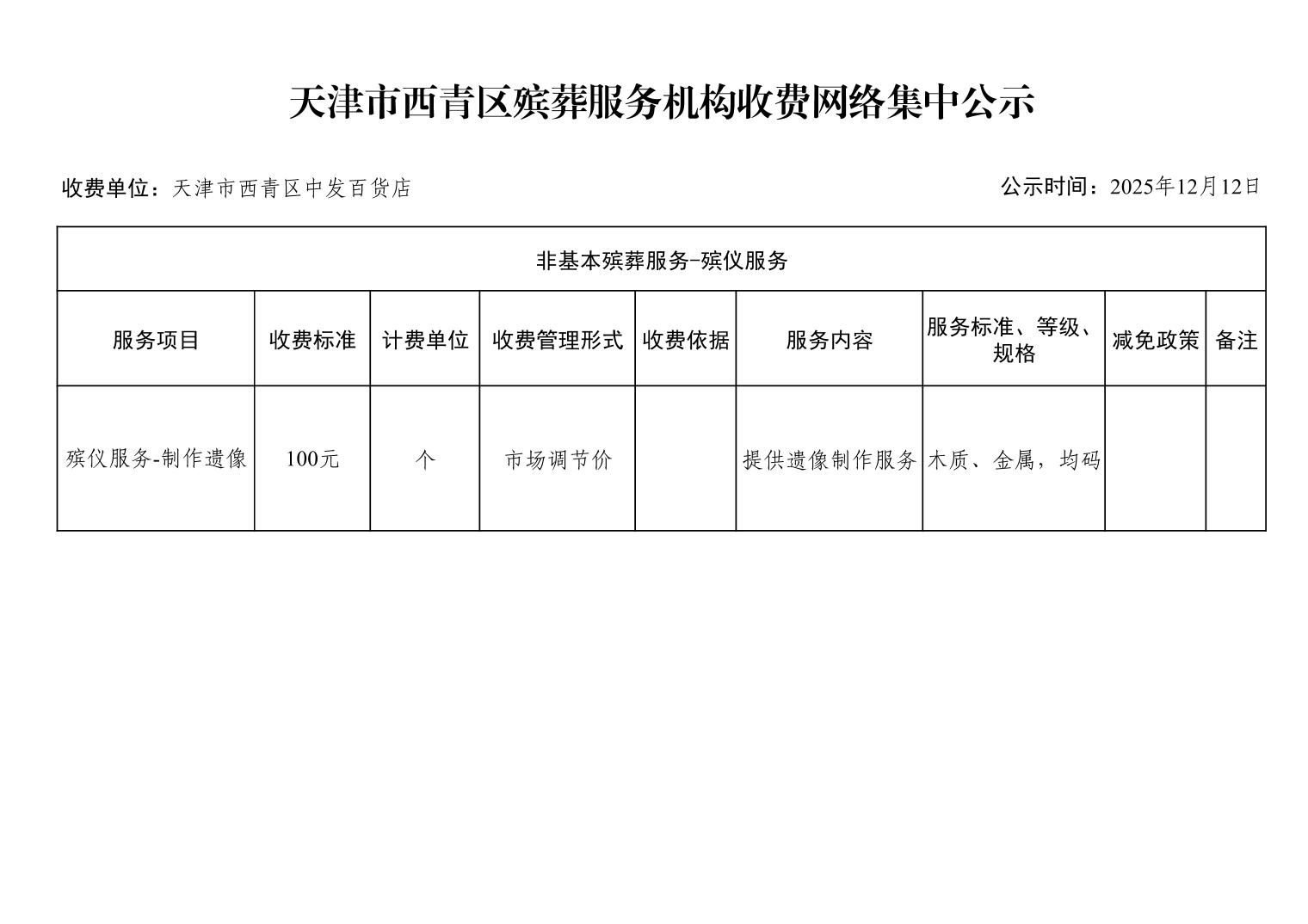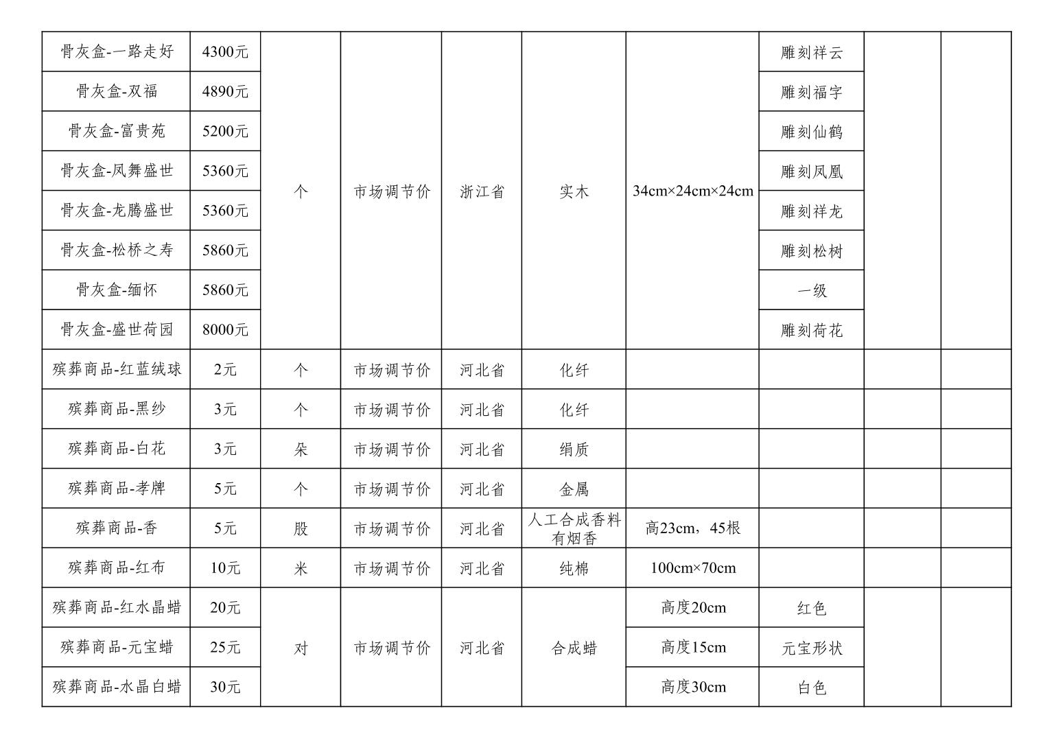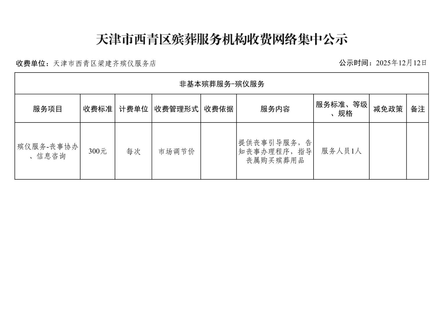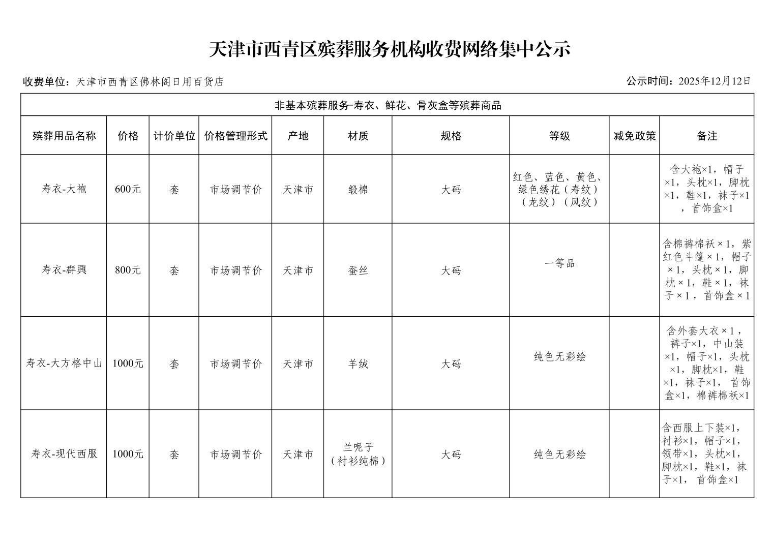 天津市西青区殡葬服务机构收费网络集中公示(殡葬市场经营主体)