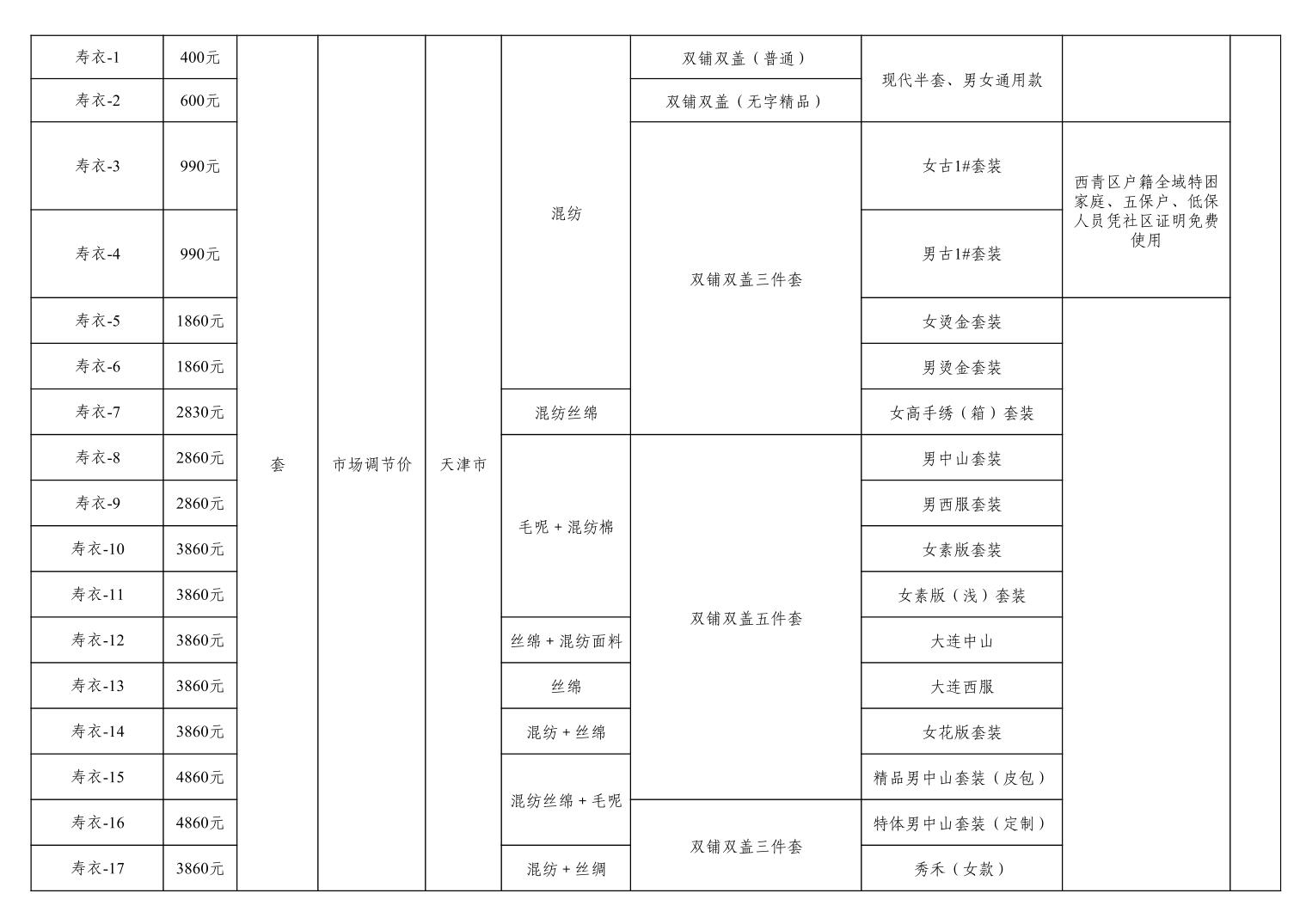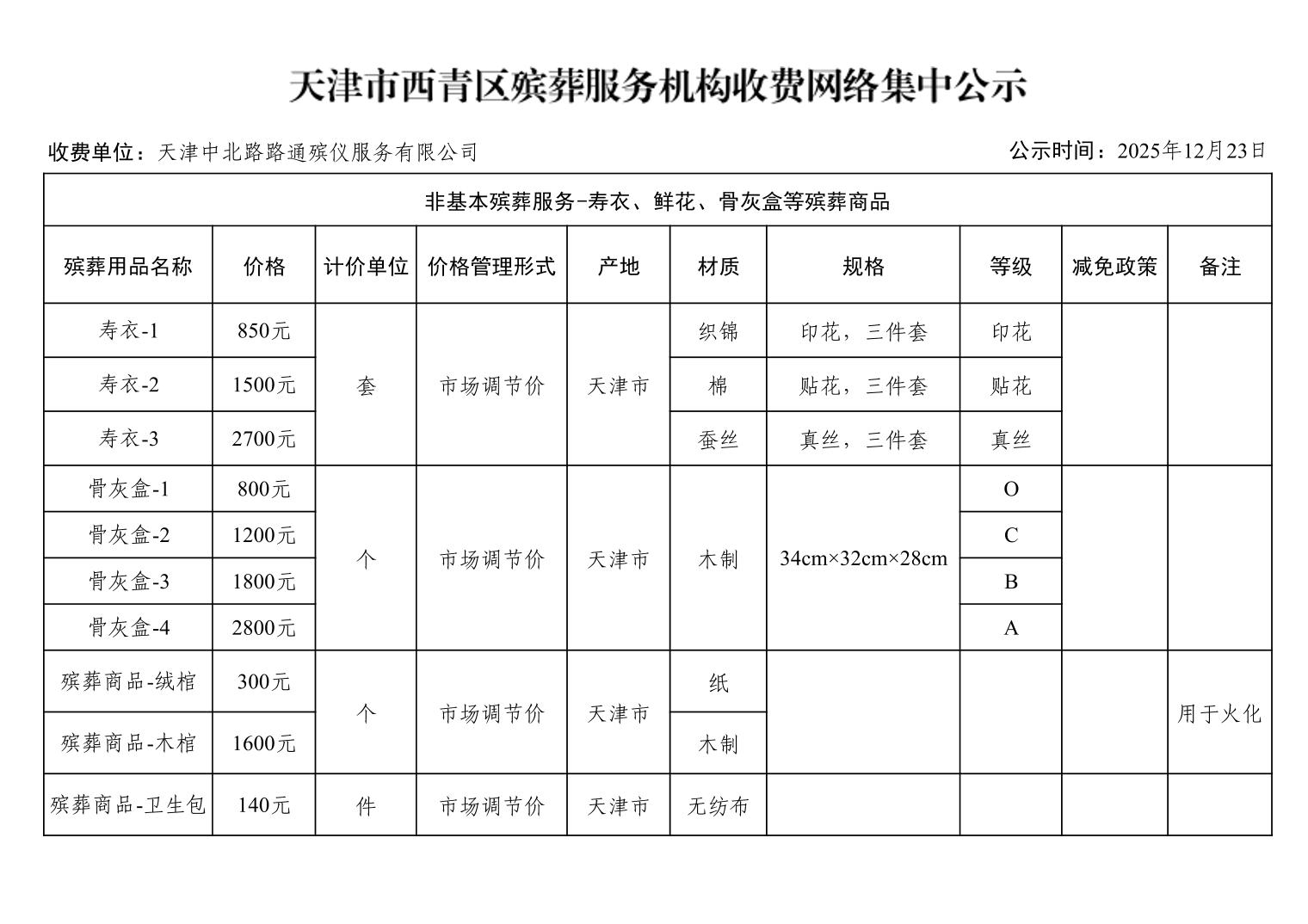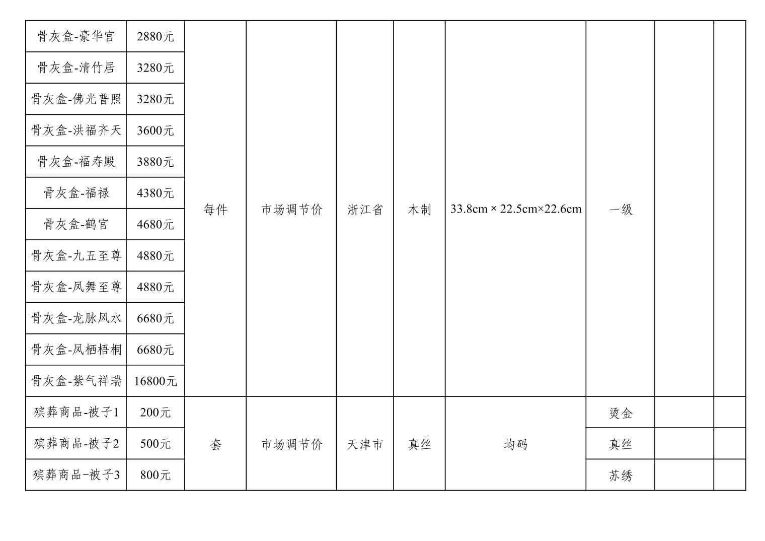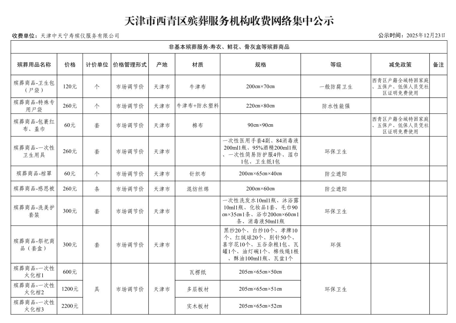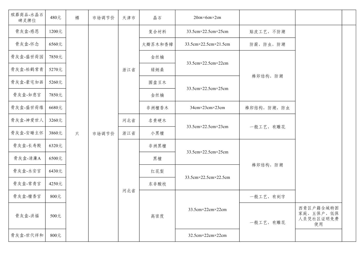 天津市西青区殡葬服务机构收费网络集中公示(殡葬市场经营主体)