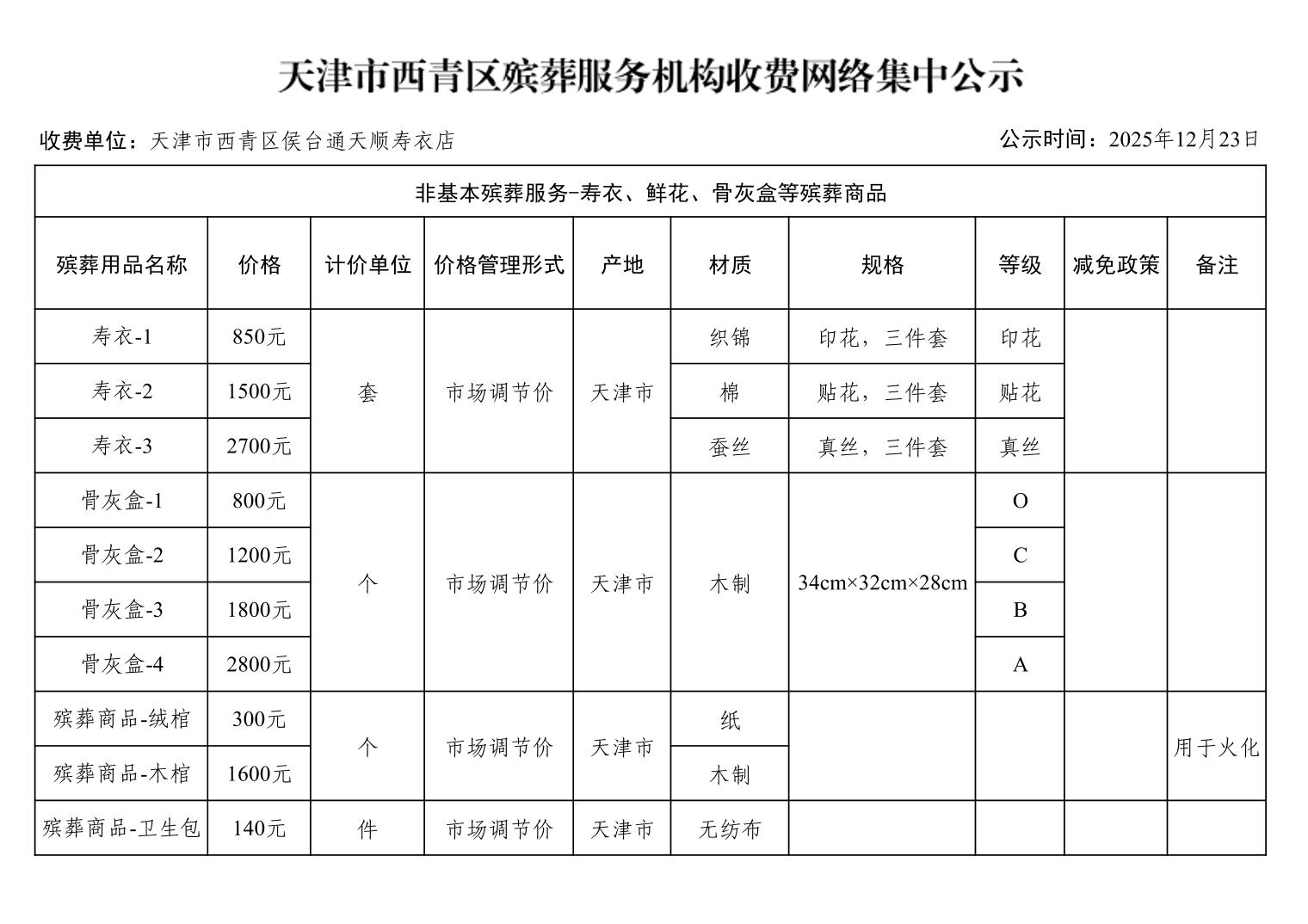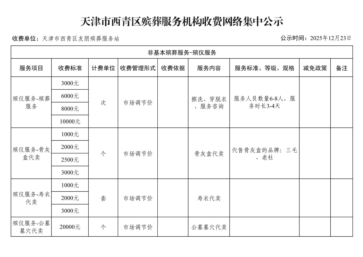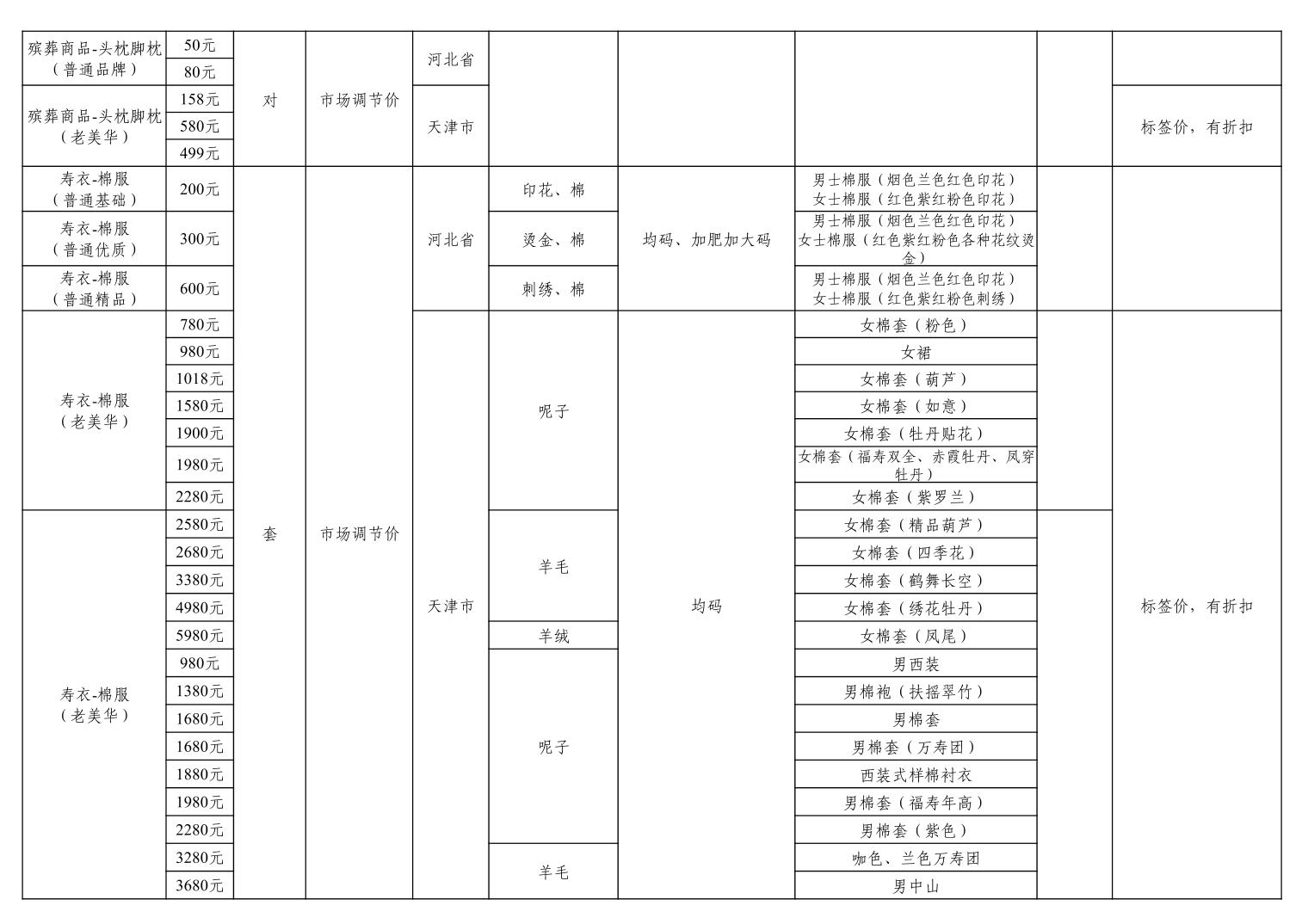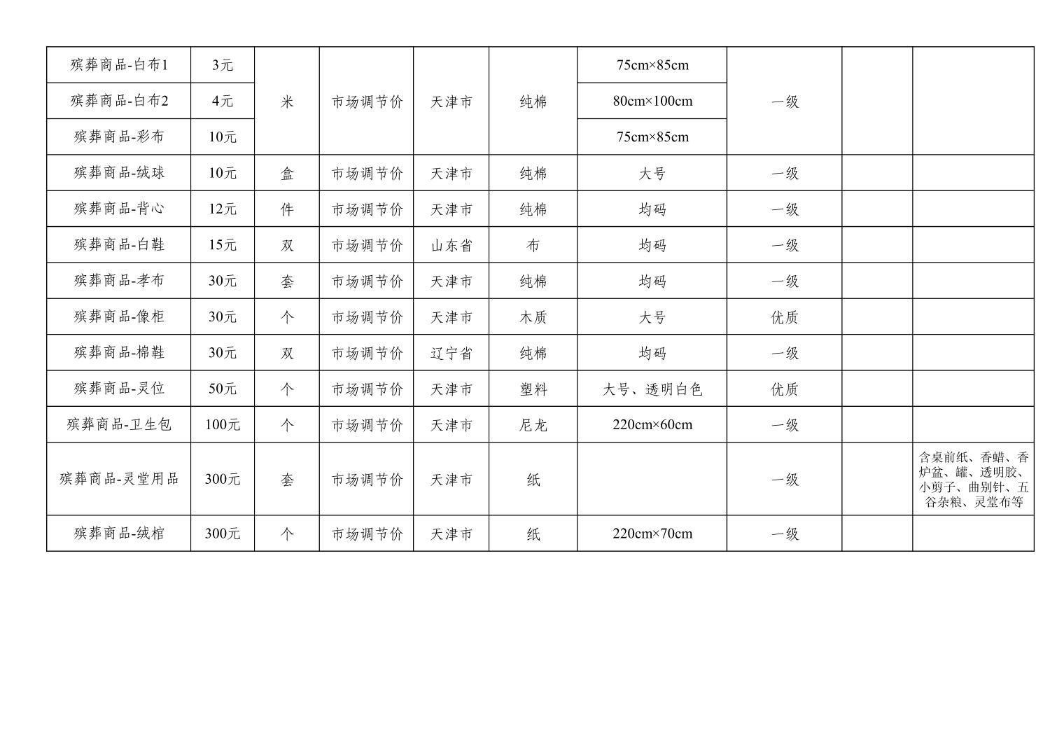 天津市西青区殡葬服务机构收费网络集中公示(殡葬市场经营主体)