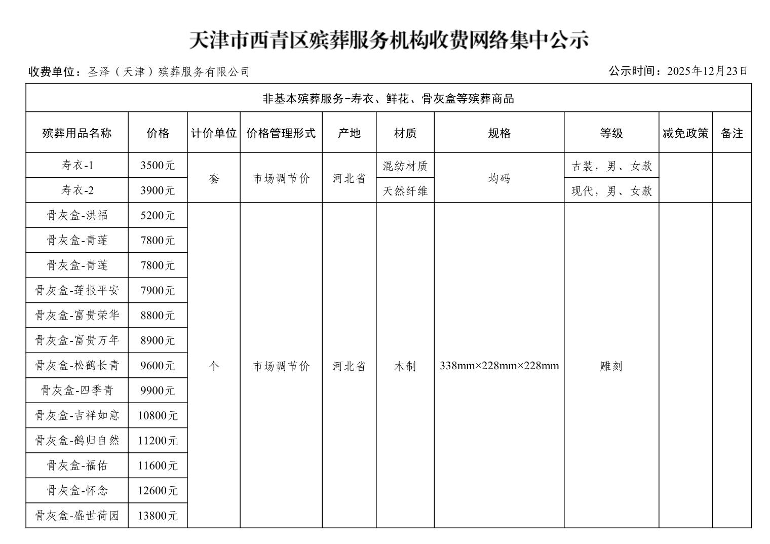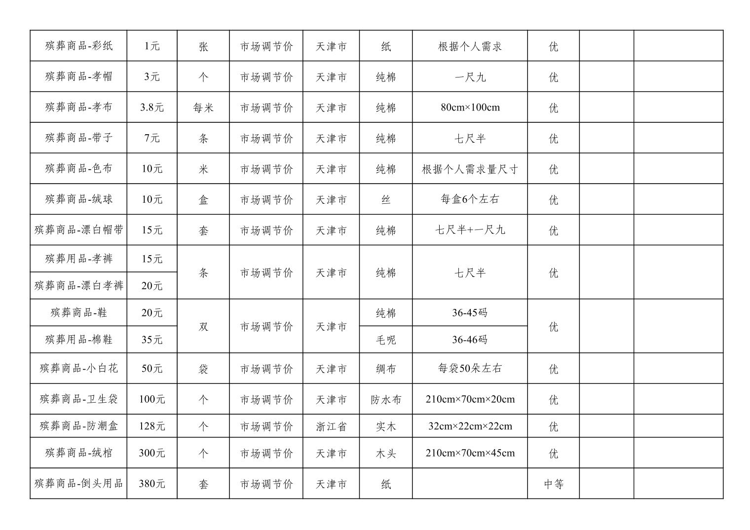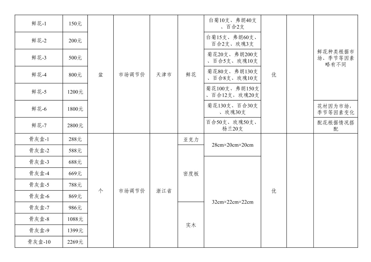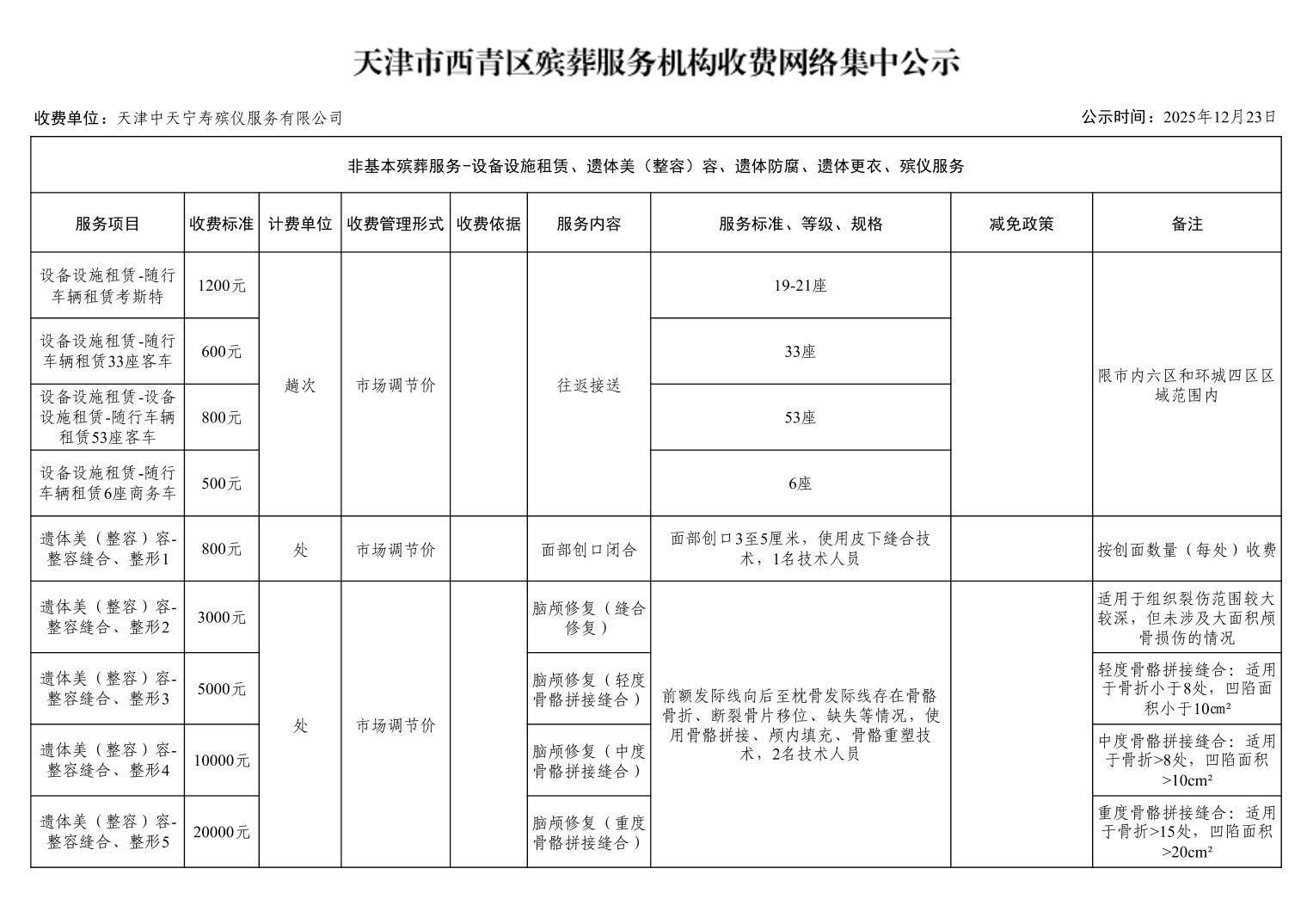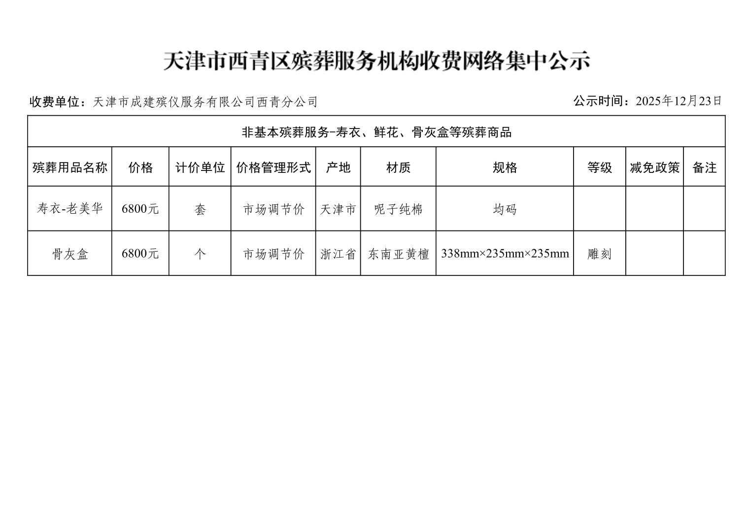 天津市西青区殡葬服务机构收费网络集中公示(殡葬市场经营主体)
