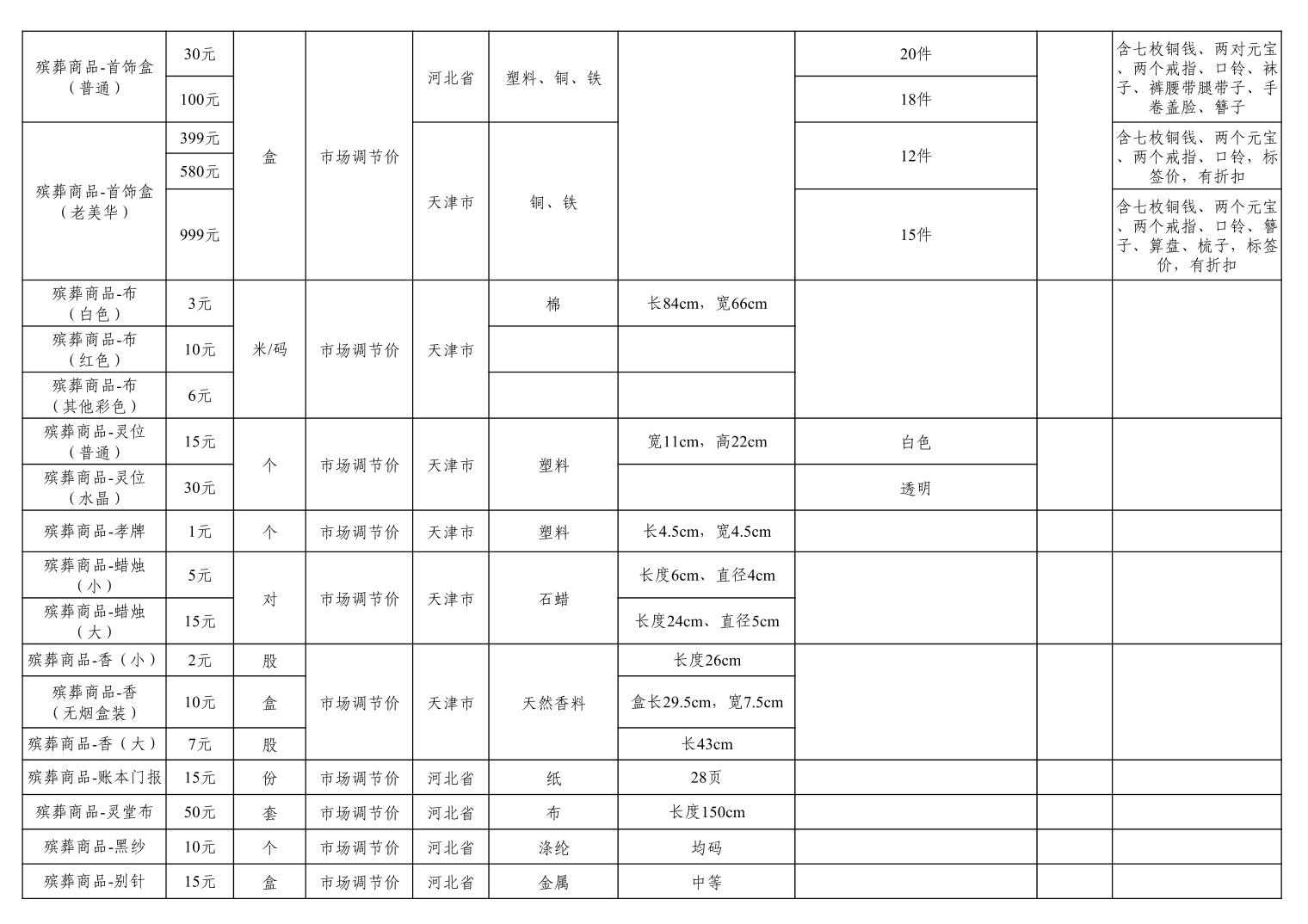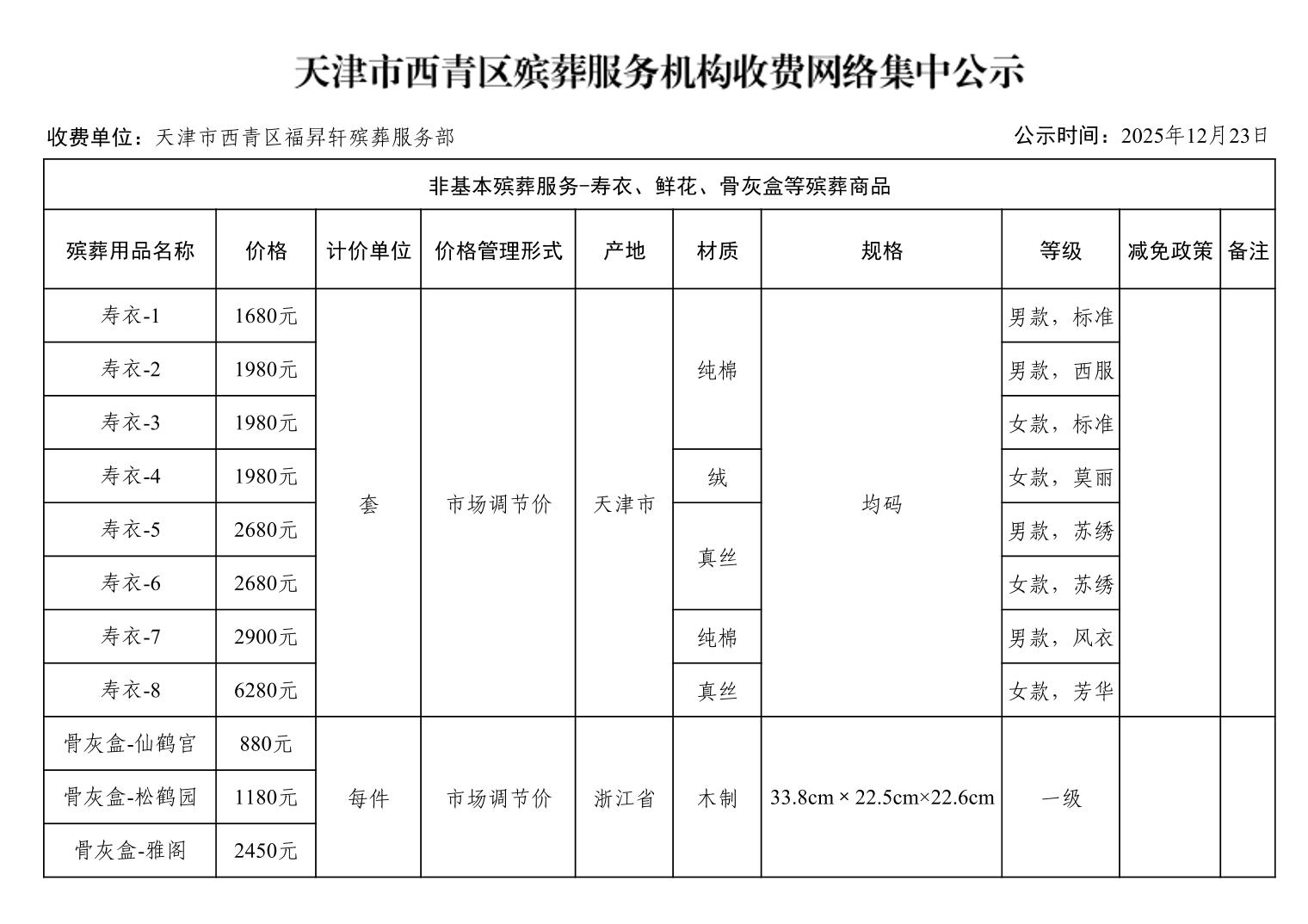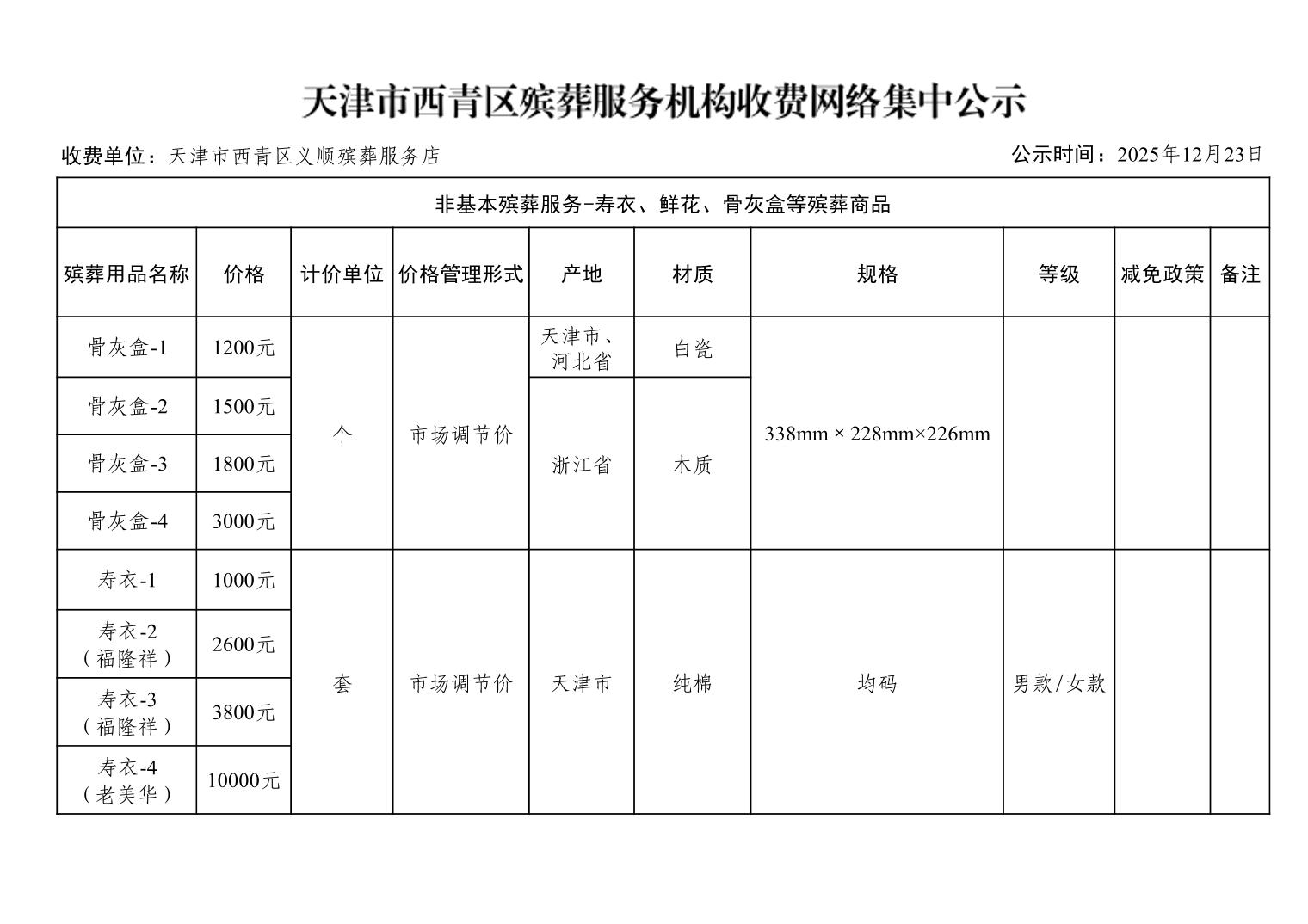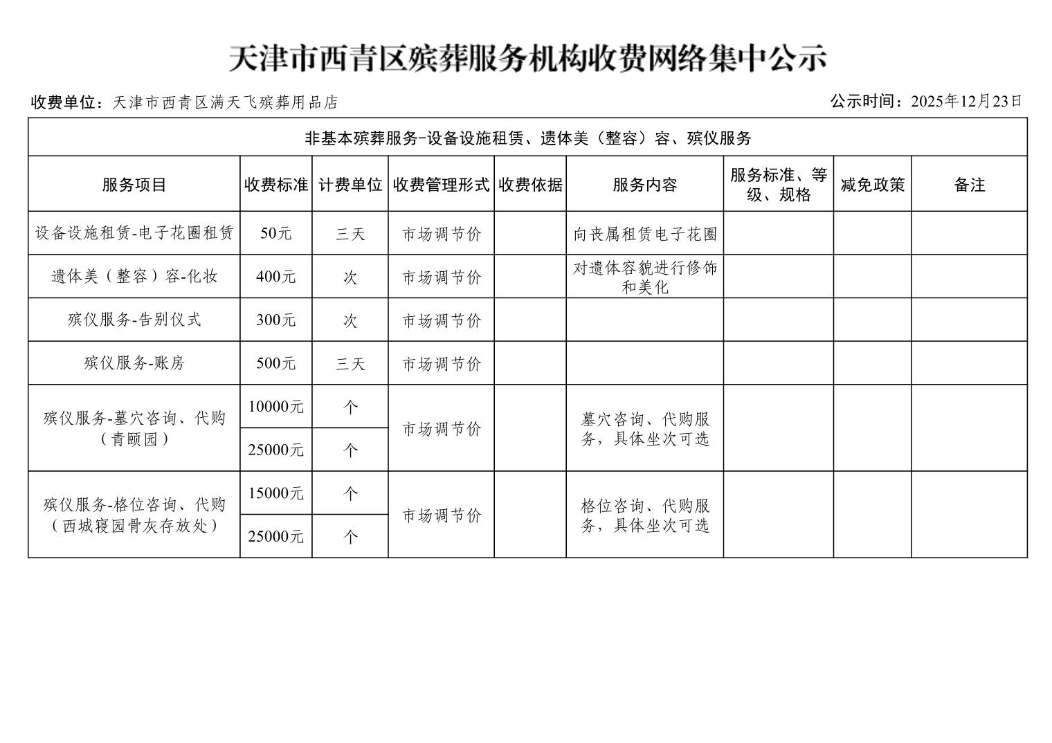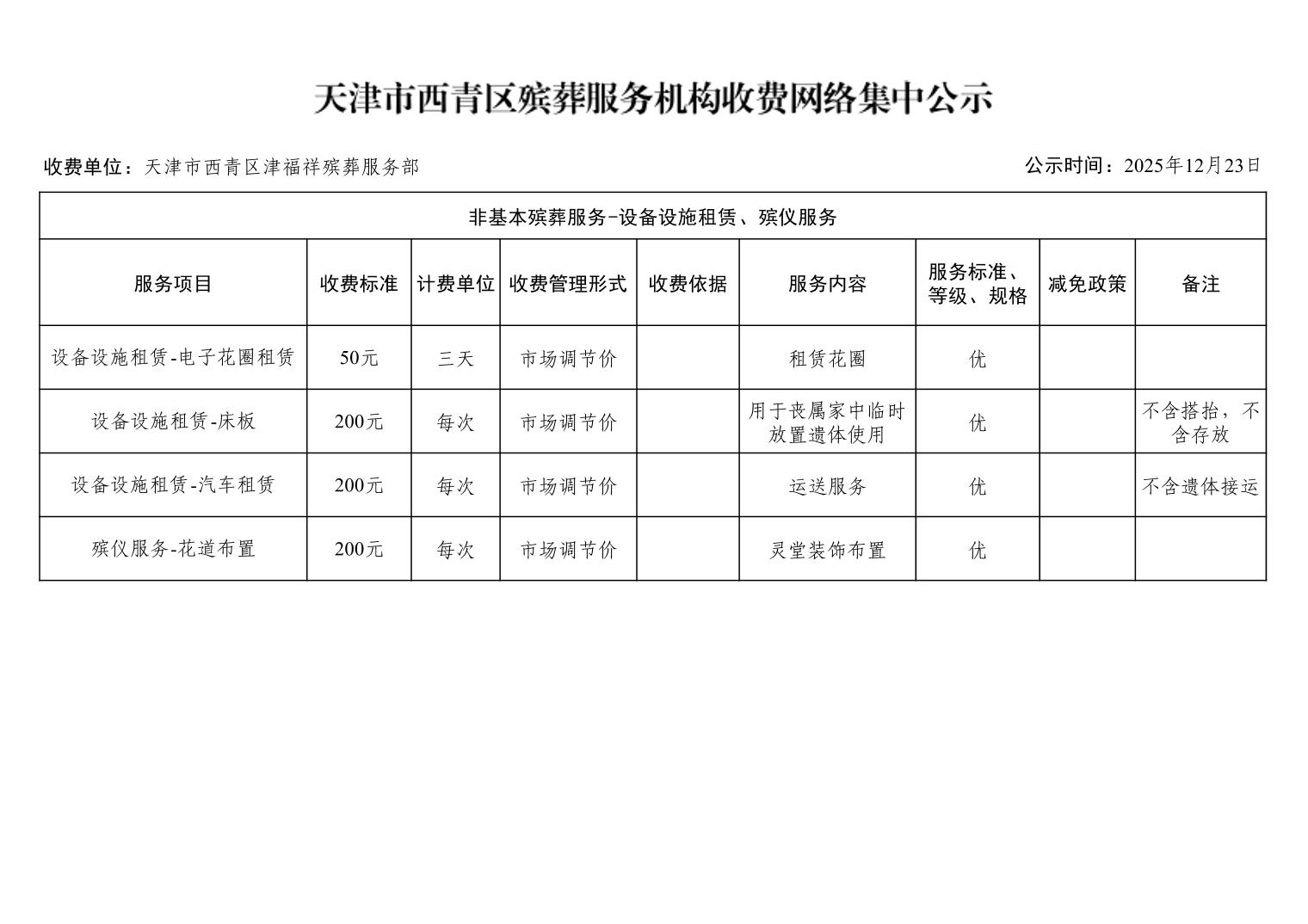 天津市西青区殡葬服务机构收费网络集中公示(殡葬市场经营主体)