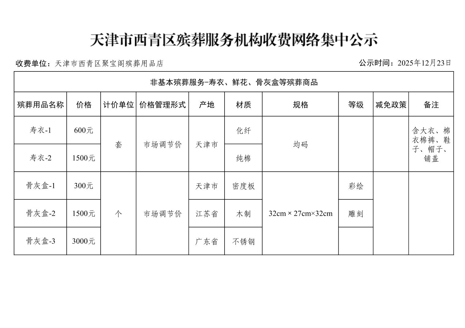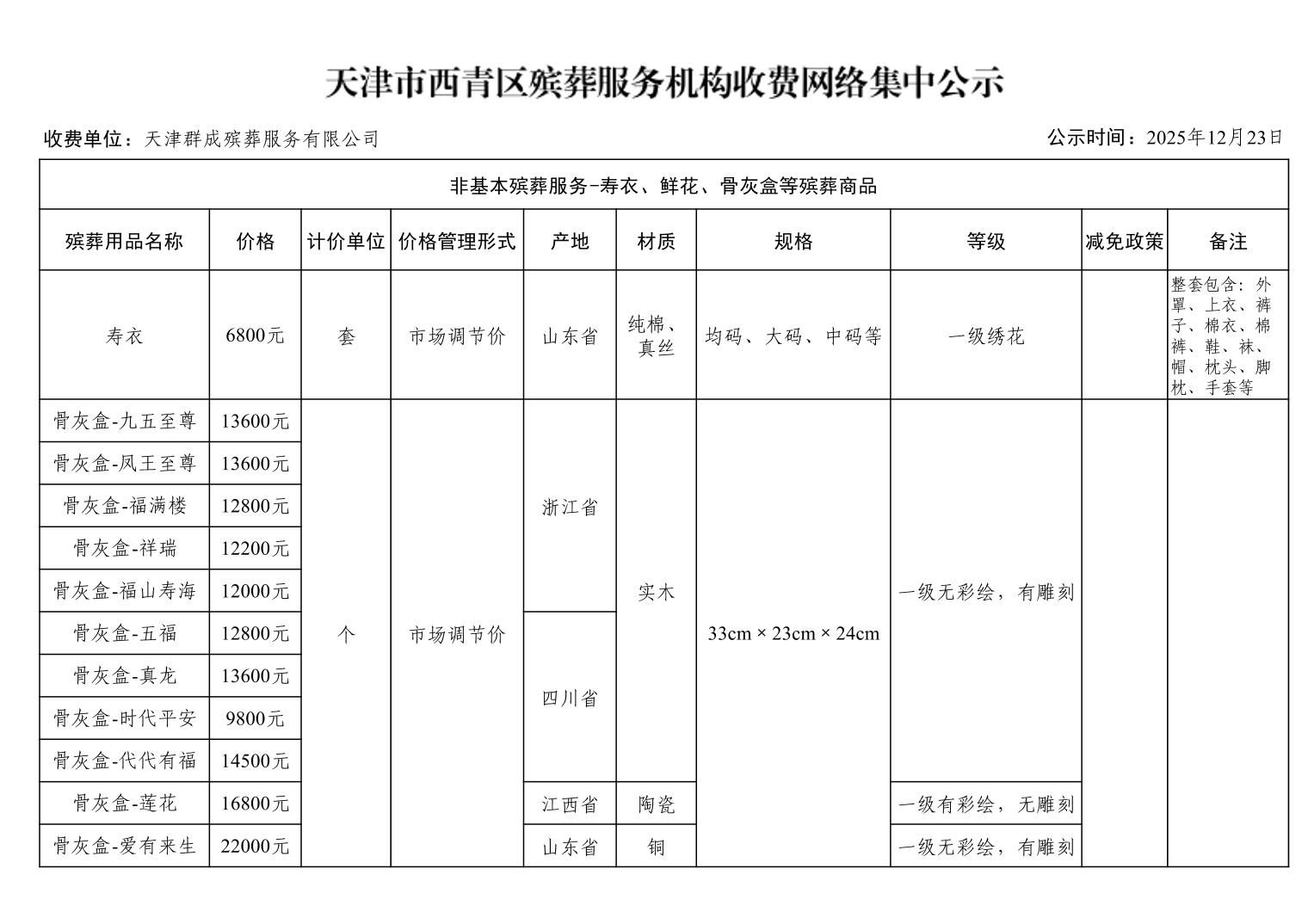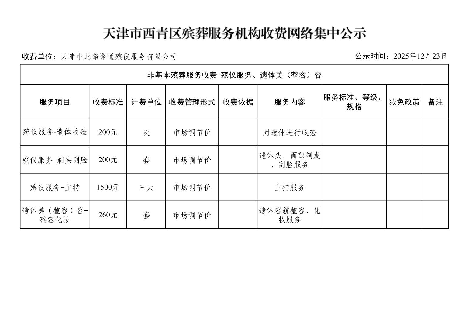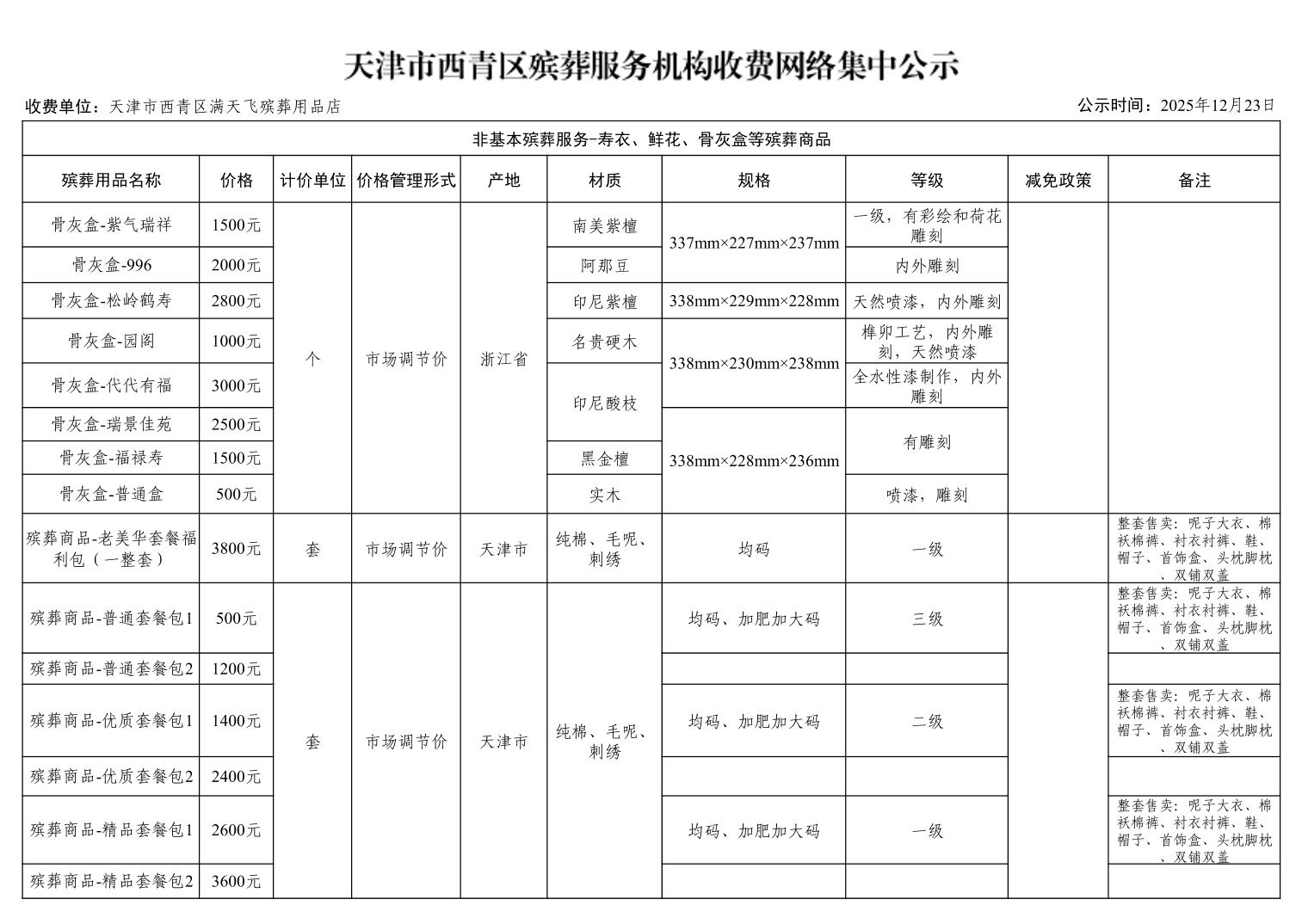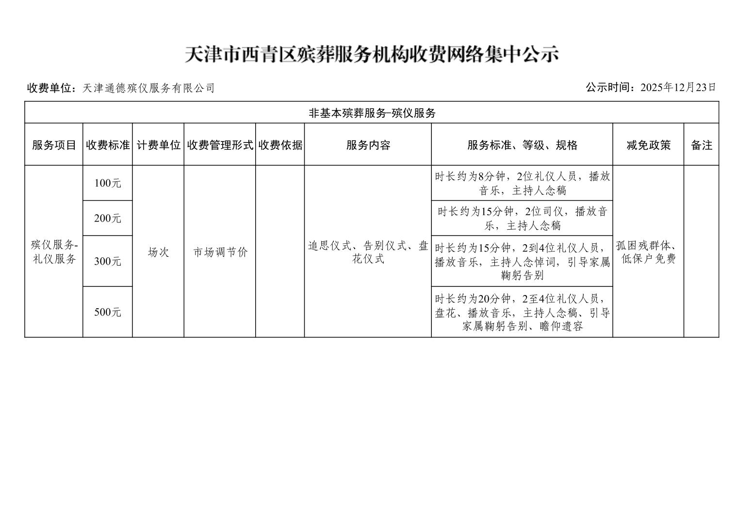 天津市西青区殡葬服务机构收费网络集中公示(殡葬市场经营主体)