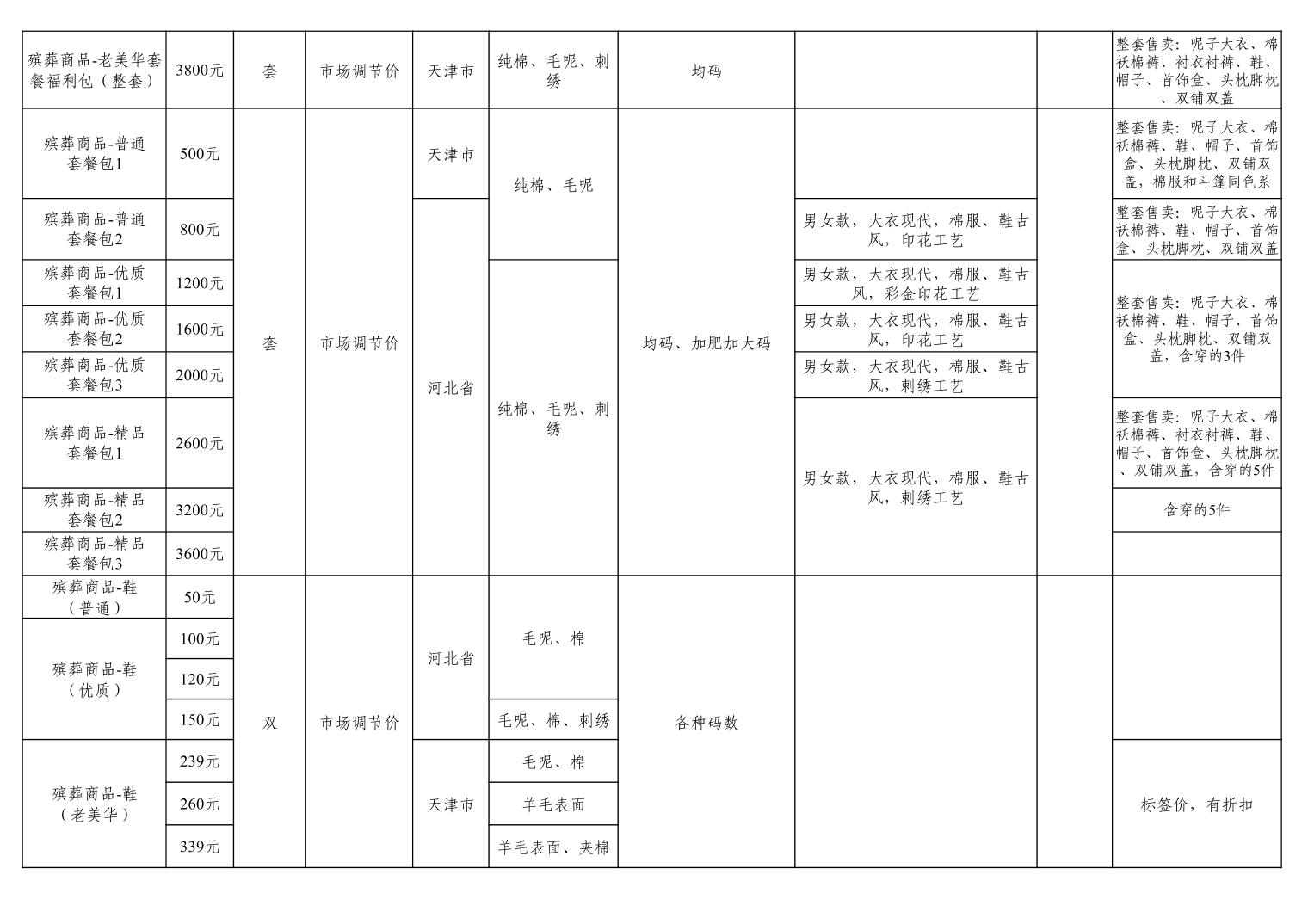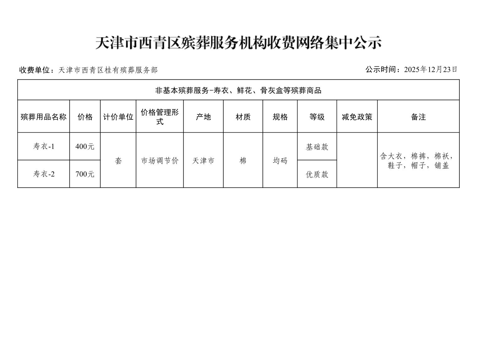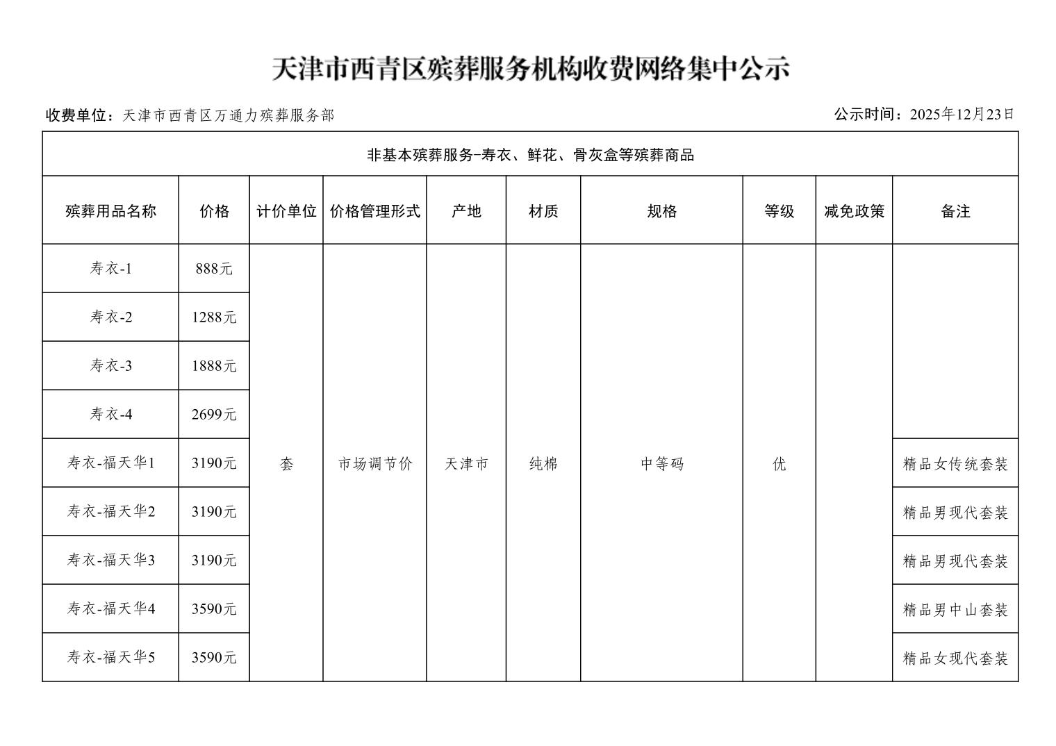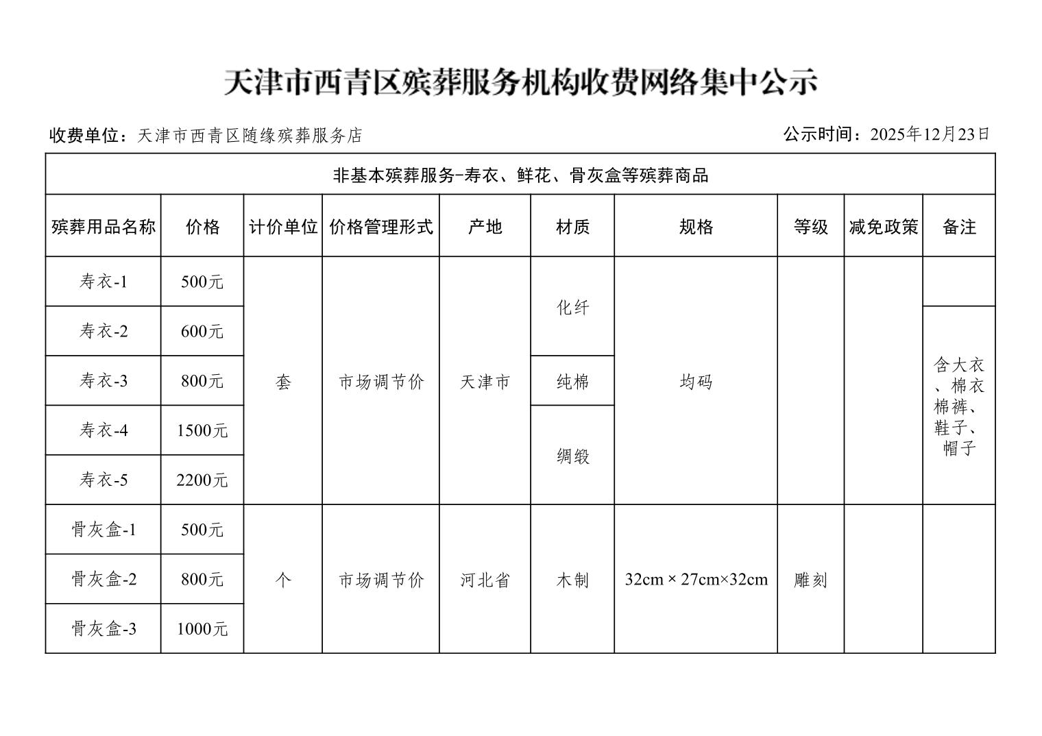 天津市西青区殡葬服务机构收费网络集中公示(殡葬市场经营主体)