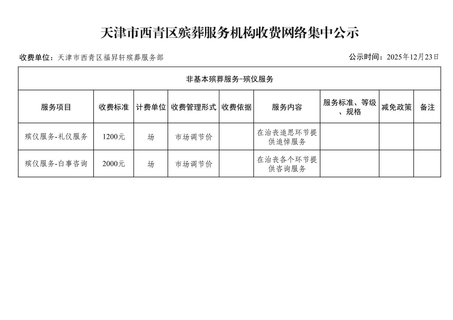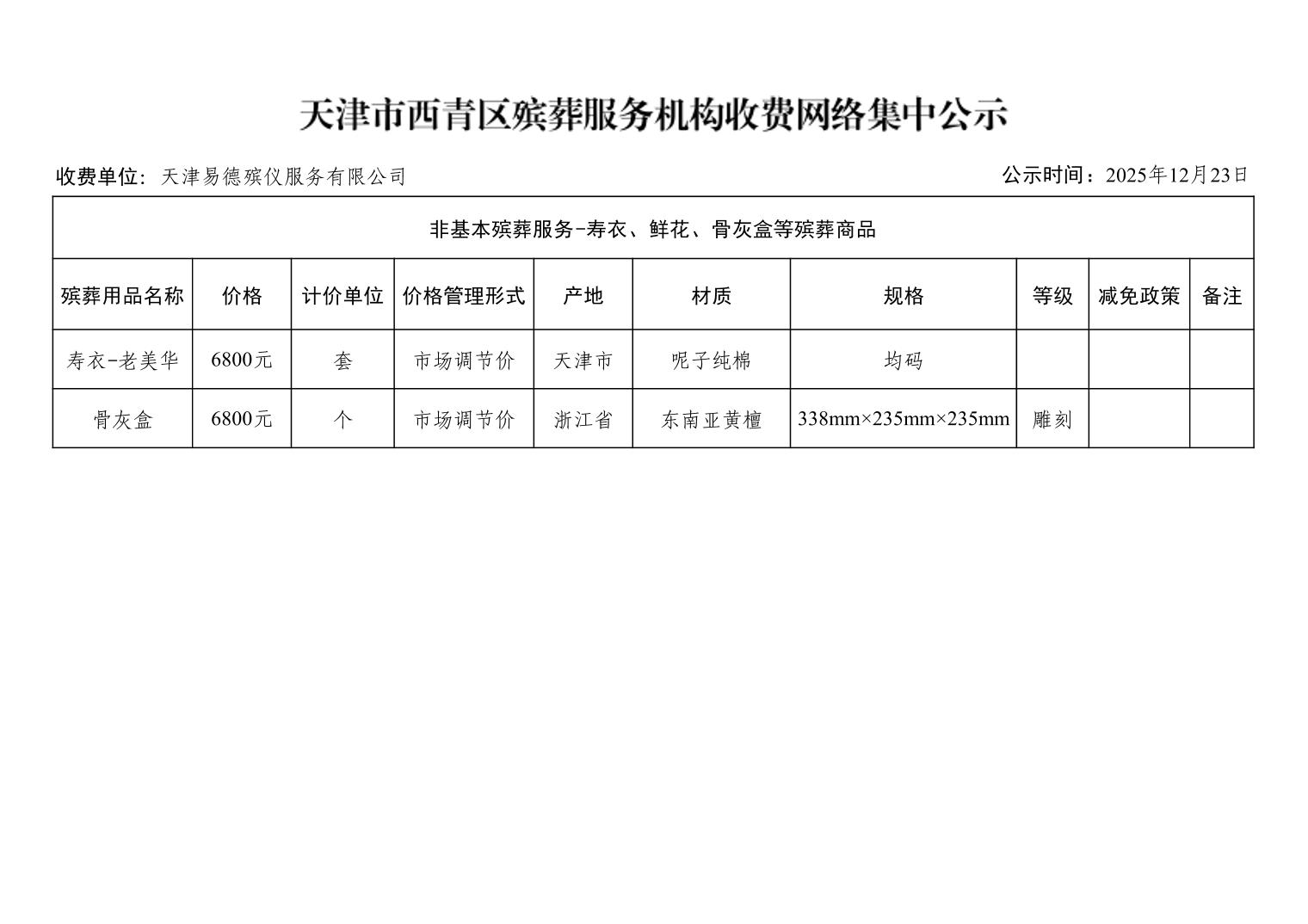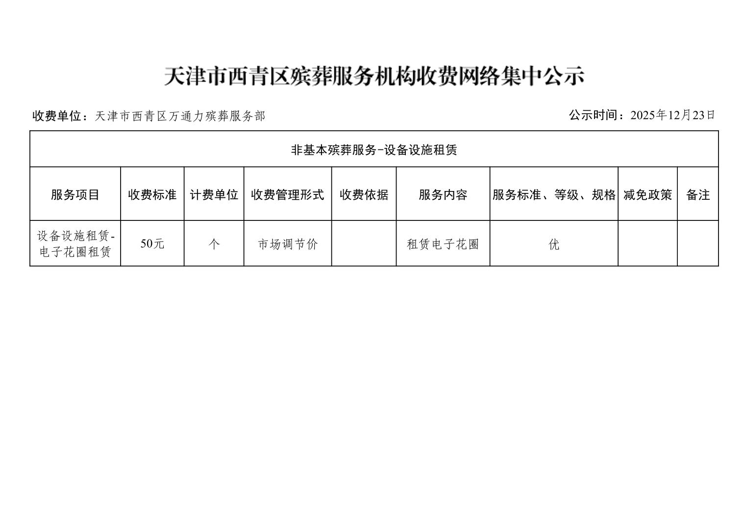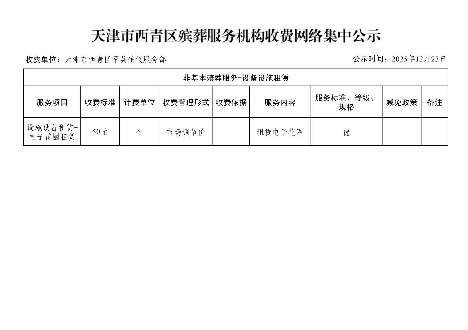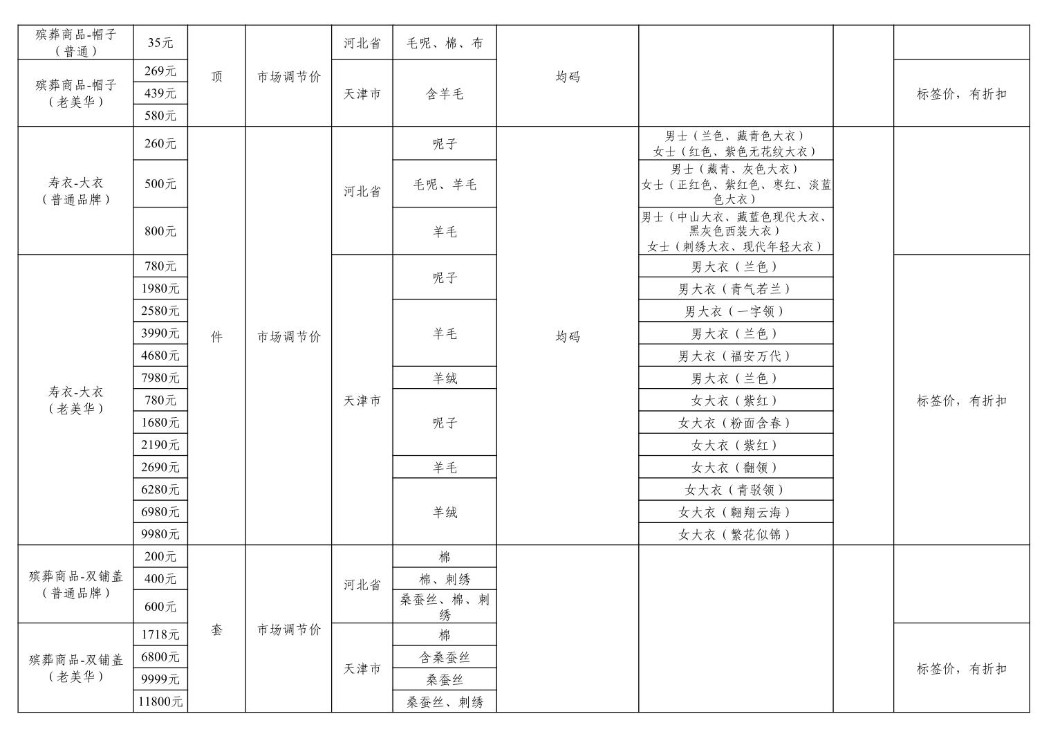 天津市西青区殡葬服务机构收费网络集中公示(殡葬市场经营主体)