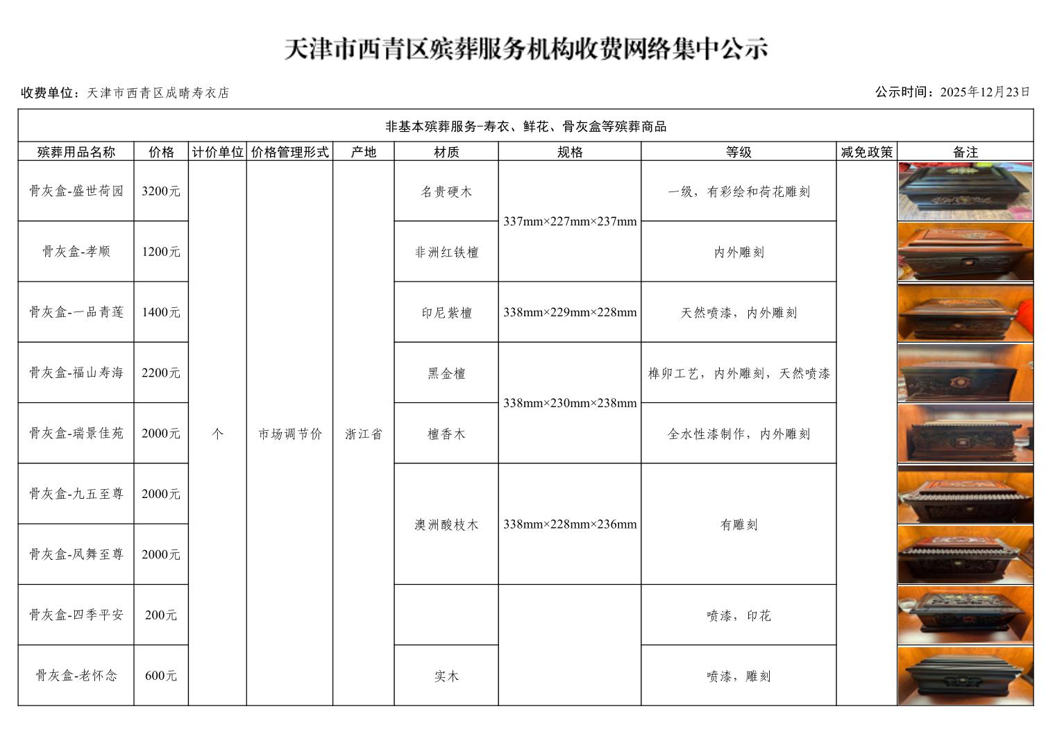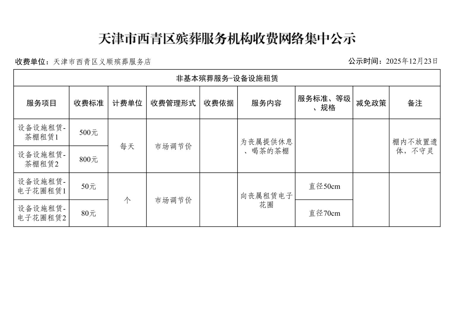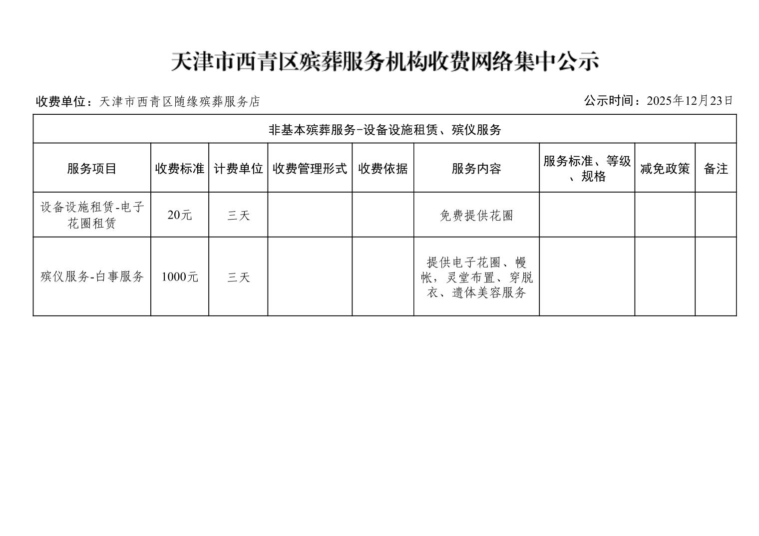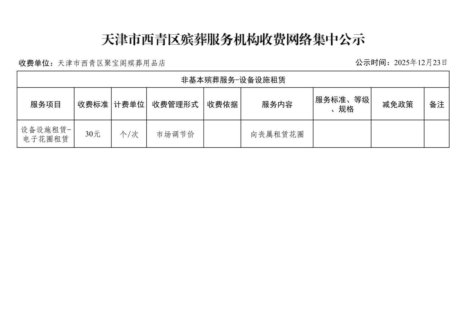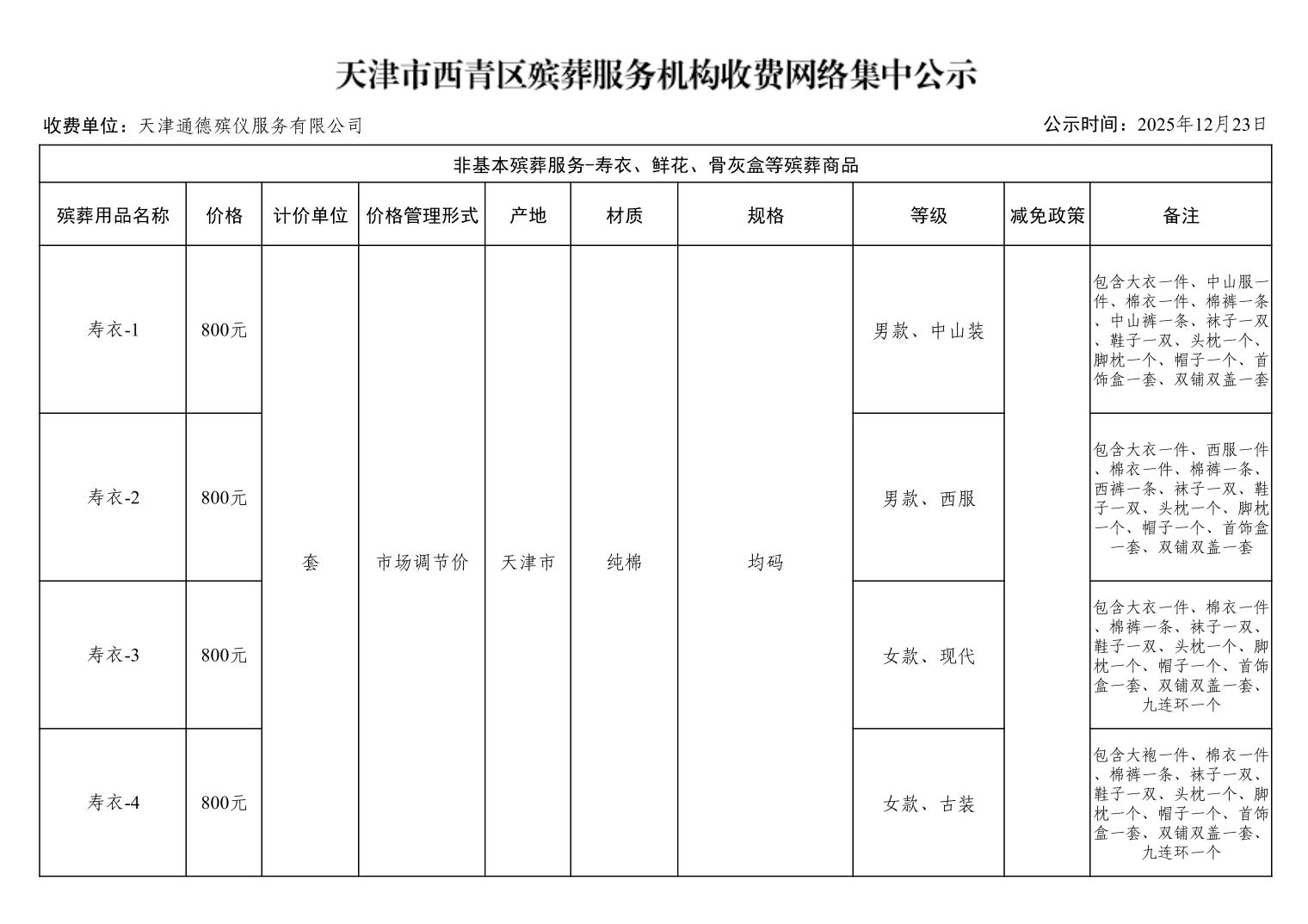 天津市西青区殡葬服务机构收费网络集中公示(殡葬市场经营主体)