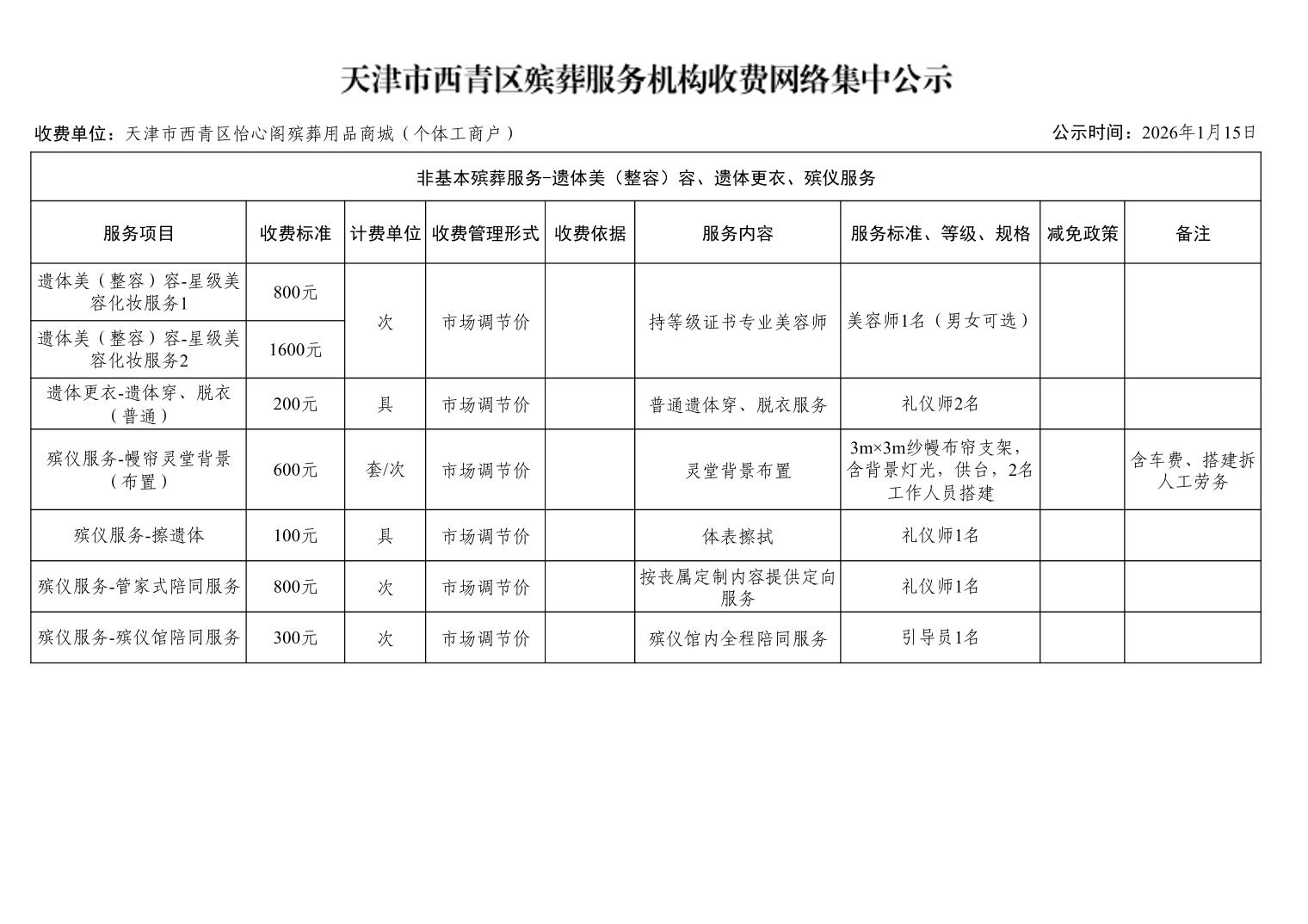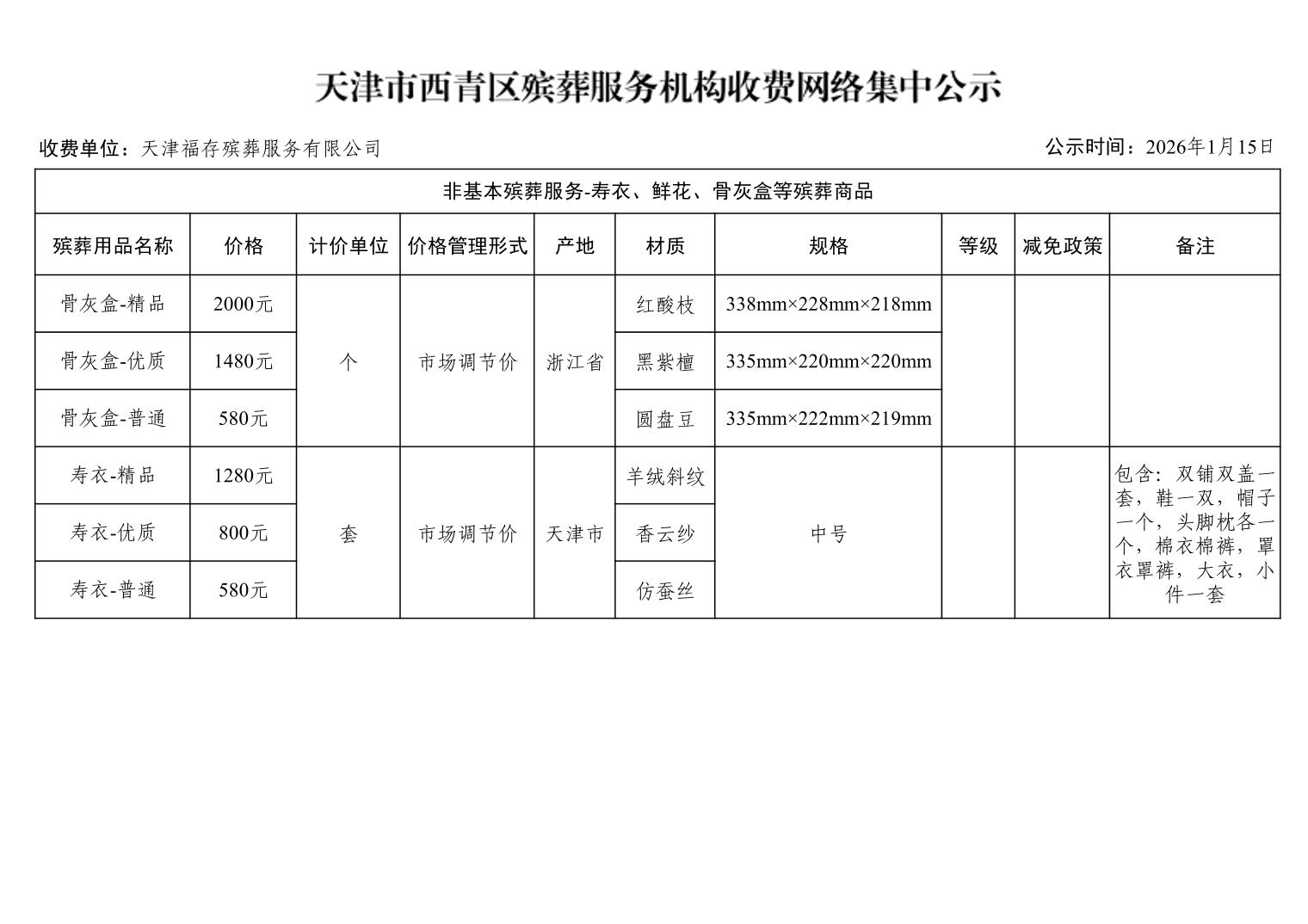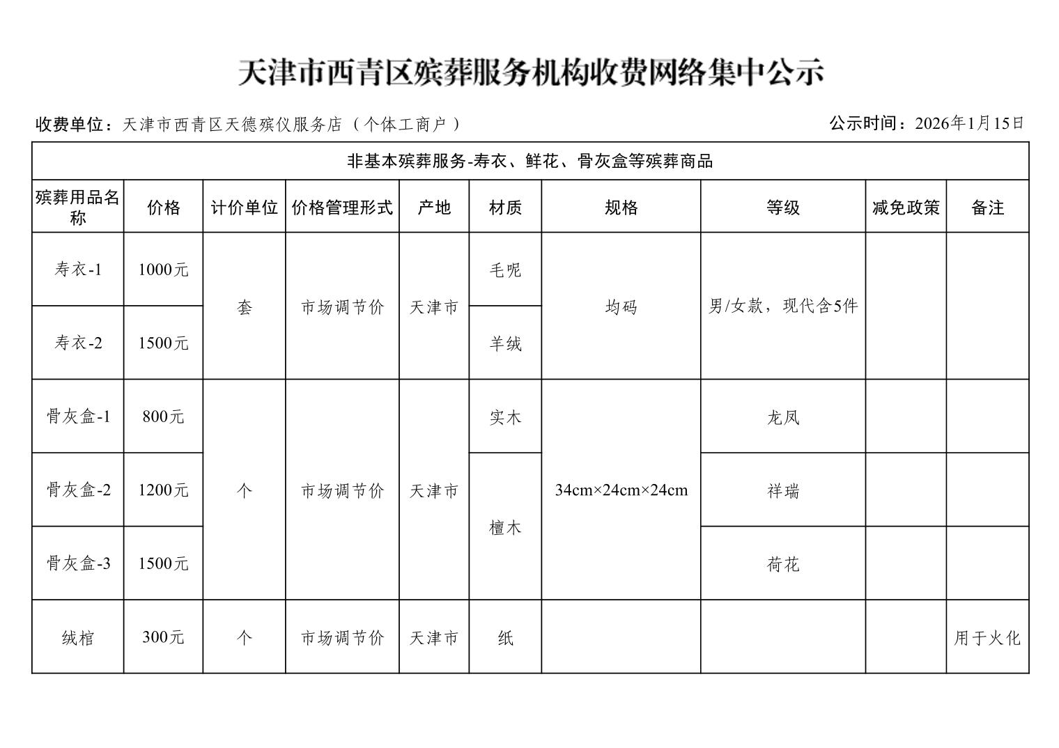 天津市西青区殡葬服务机构收费网络集中公示(殡葬市场经营主体)