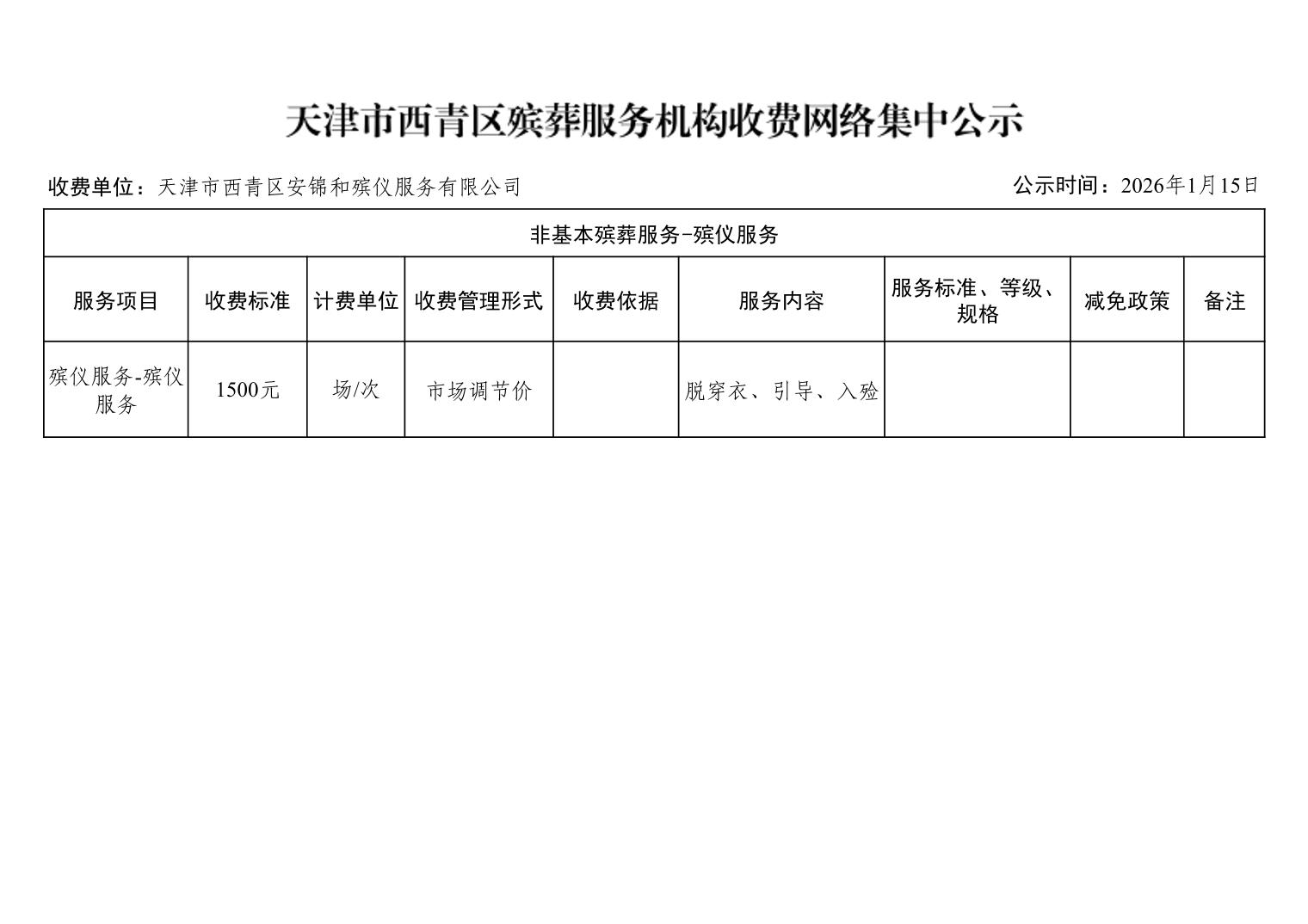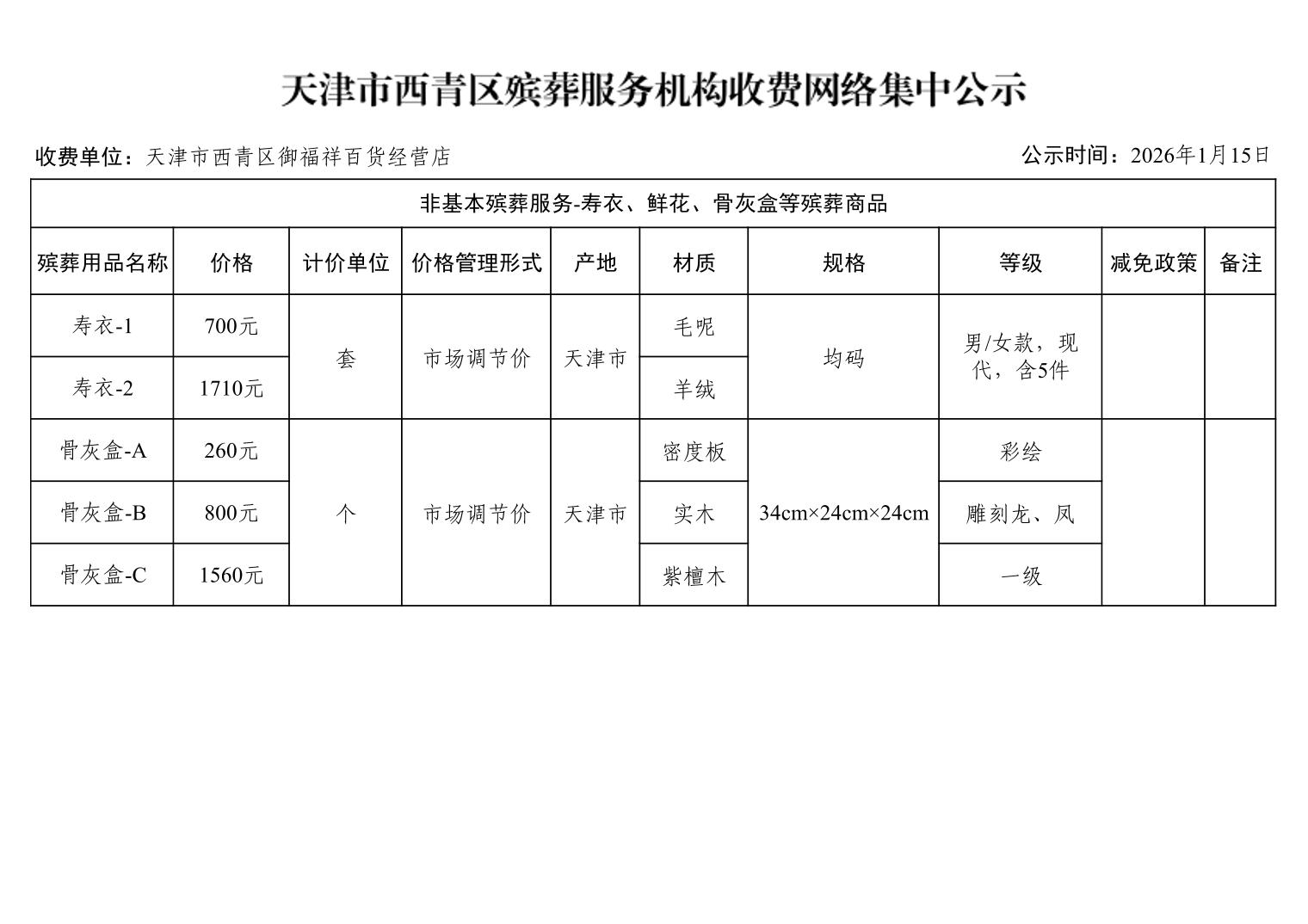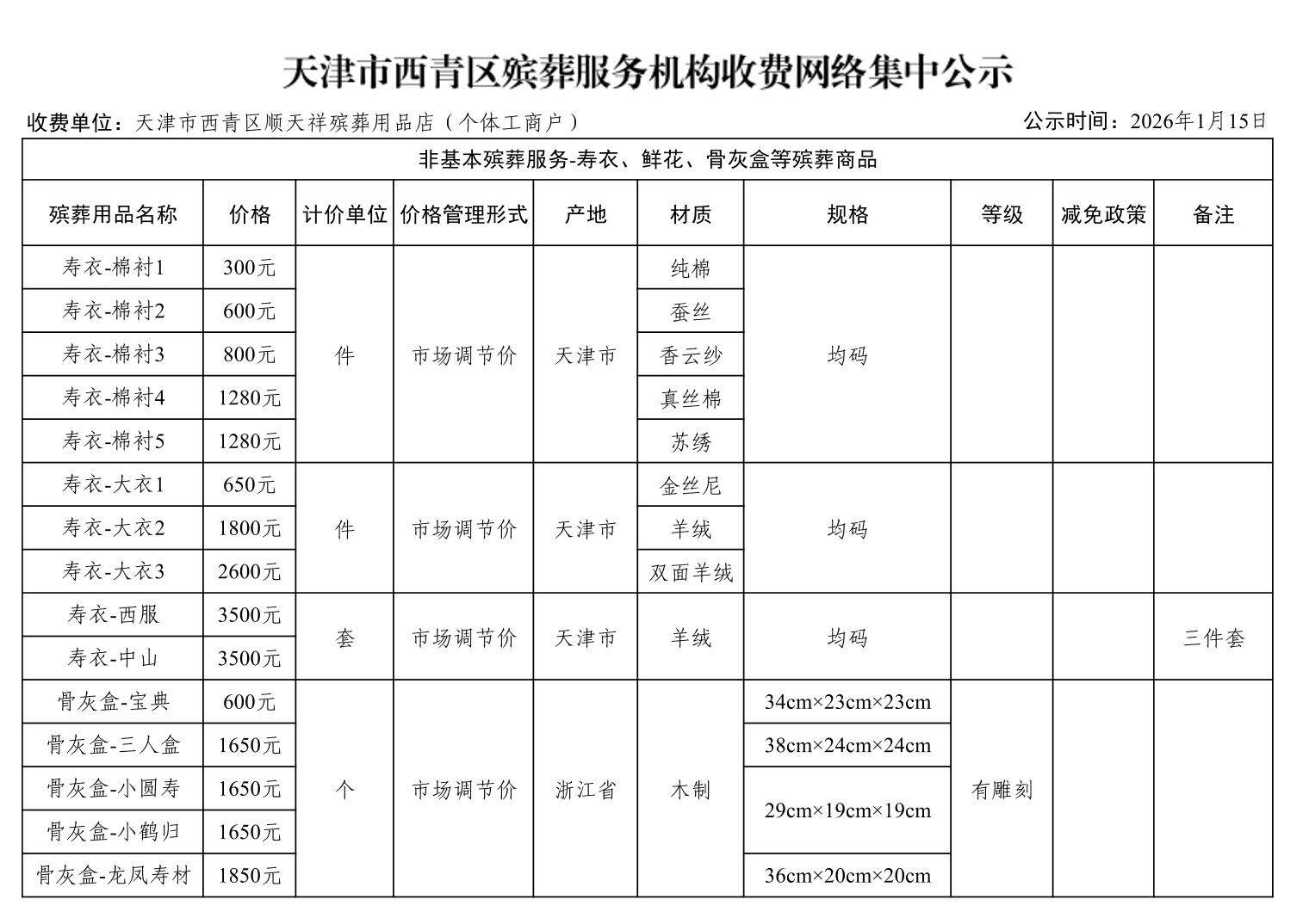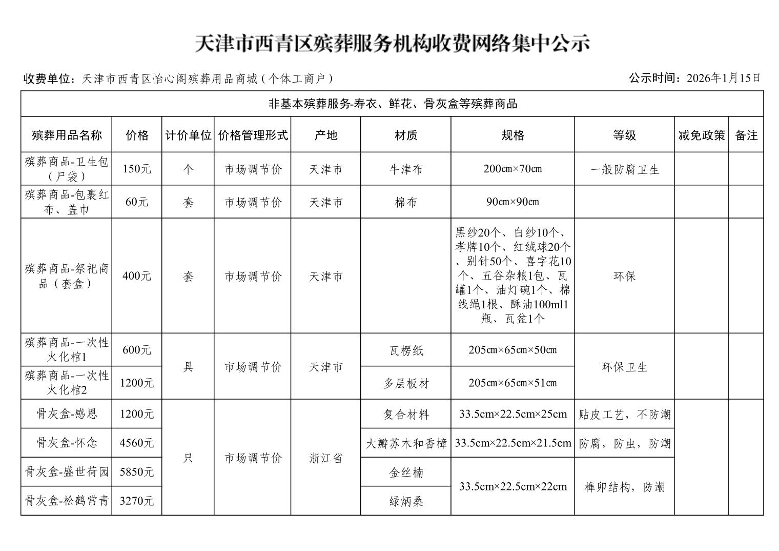 天津市西青区殡葬服务机构收费网络集中公示(殡葬市场经营主体)