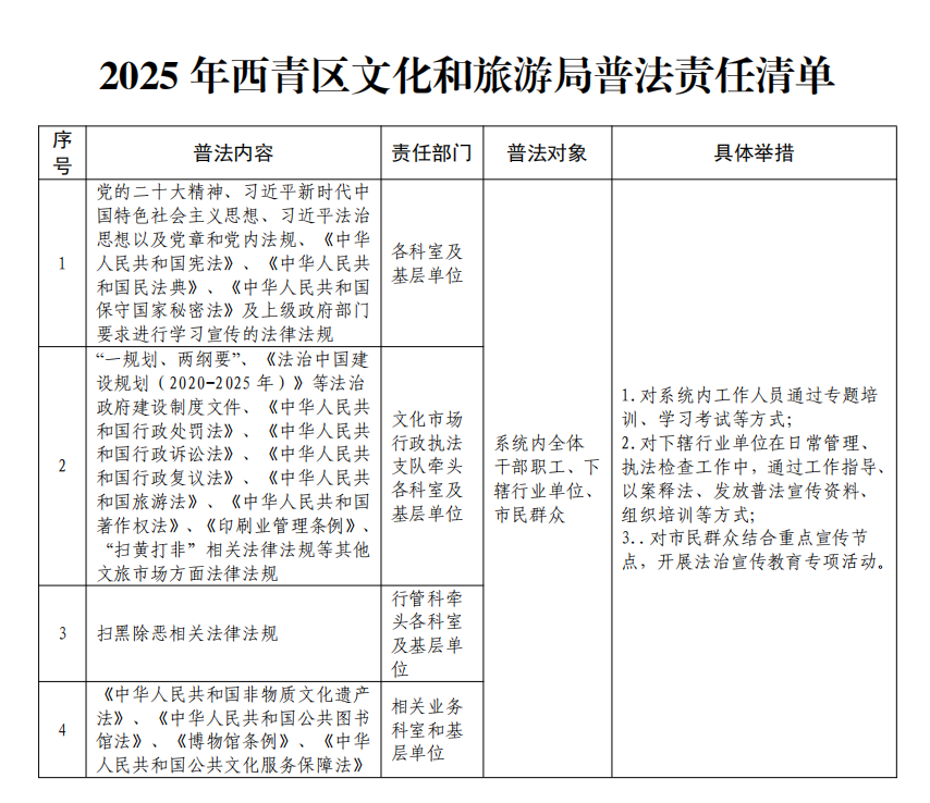 2025年西青区文化和旅游局普法责任清单