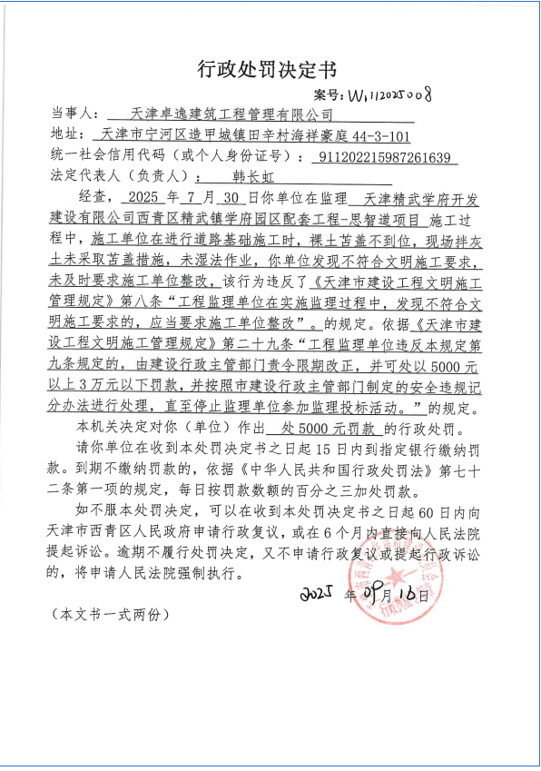 依据《西青区关于全面推行行政执法公示制度执法全过程记录制度重大执法决定法律审核制度的实施方案》,对行政执法决定予以公示。