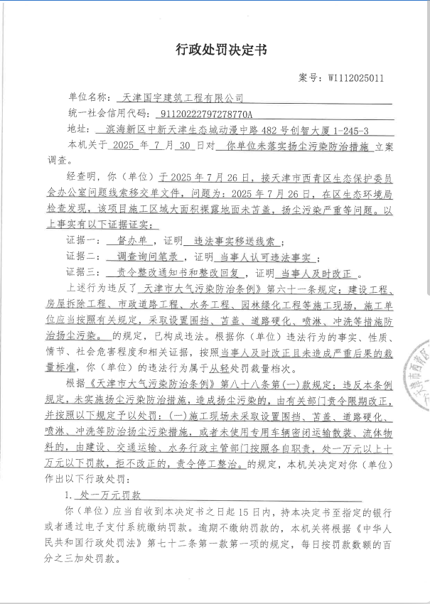 依据《西青区关于全面推行行政执法公示制度执法全过程记录制度重大执法决定法律审核制度的实施方案》,对行政执法决定予以公示。