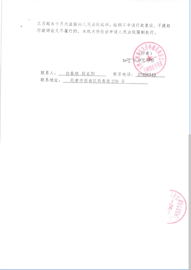 依据《西青区关于全面推行行政执法公示制度执法全过程记录制度重大执法决定法律审核制度的实施方案》,对行政执法决定予以公示。