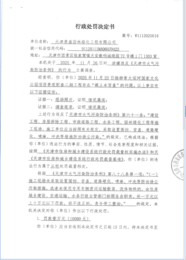 行政处罚决定书(W1112025016)
